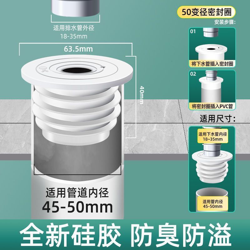 • 회색 냄새 방지 밀봉 플러그 + * 탄성 실리콘 - [45-50mm에 적용 가능] + 두꺼워지고 강화됨