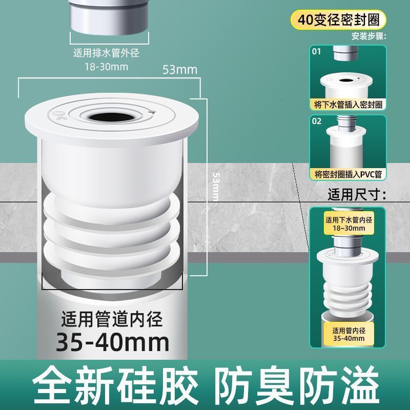 • 회색 냄새 방지 밀봉 플러그 + 탄성 실리콘 - [45-50mm에 적용 가능] + 두꺼워지고 강화됨