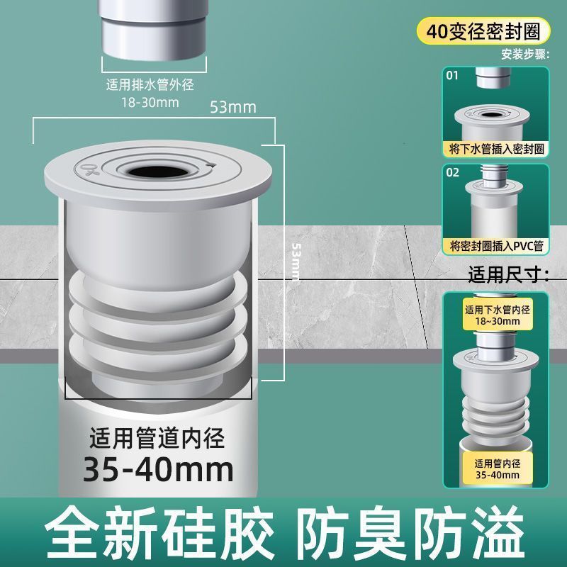 • 회색 냄새 방지 밀봉 플러그 + * 탄성 실리콘 - [35-40mm에 적용 가능] + 두꺼워지고 강화됨