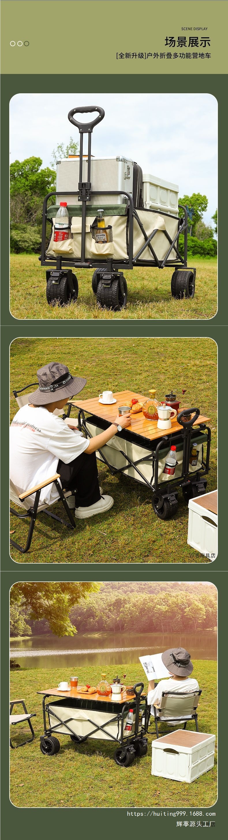 • 캠퍼밴 + 접이식 테이블 - 대형 트레일러 탱크 휠(카키색)