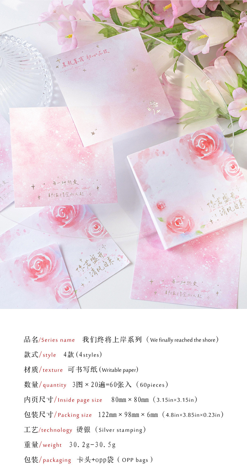 모모 핫 실버 노트북, 우리는 결국 해안에 도착할 것입니다 시리즈 문학적 스타일의 일러스트레이션 텍스트 노트북 장식 메모 용지스토어 가기