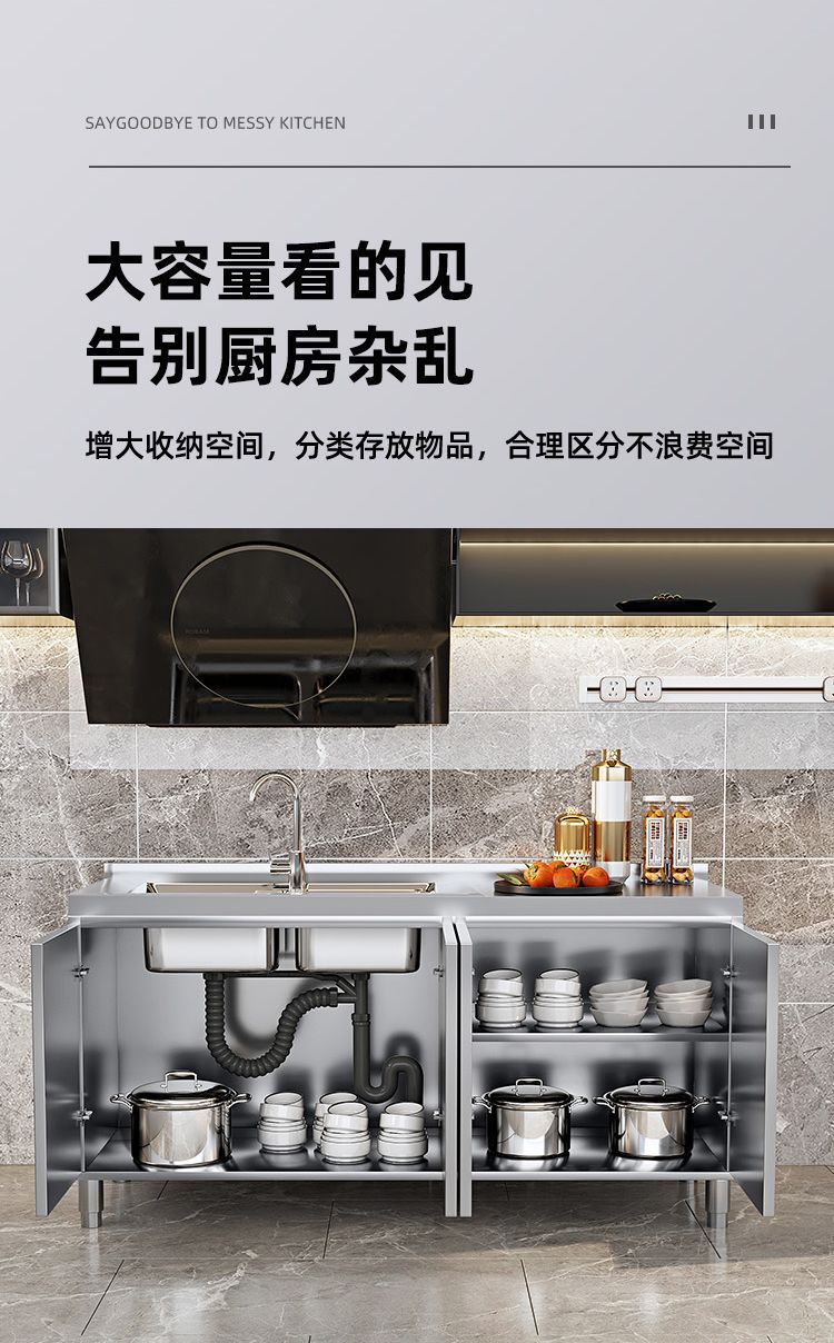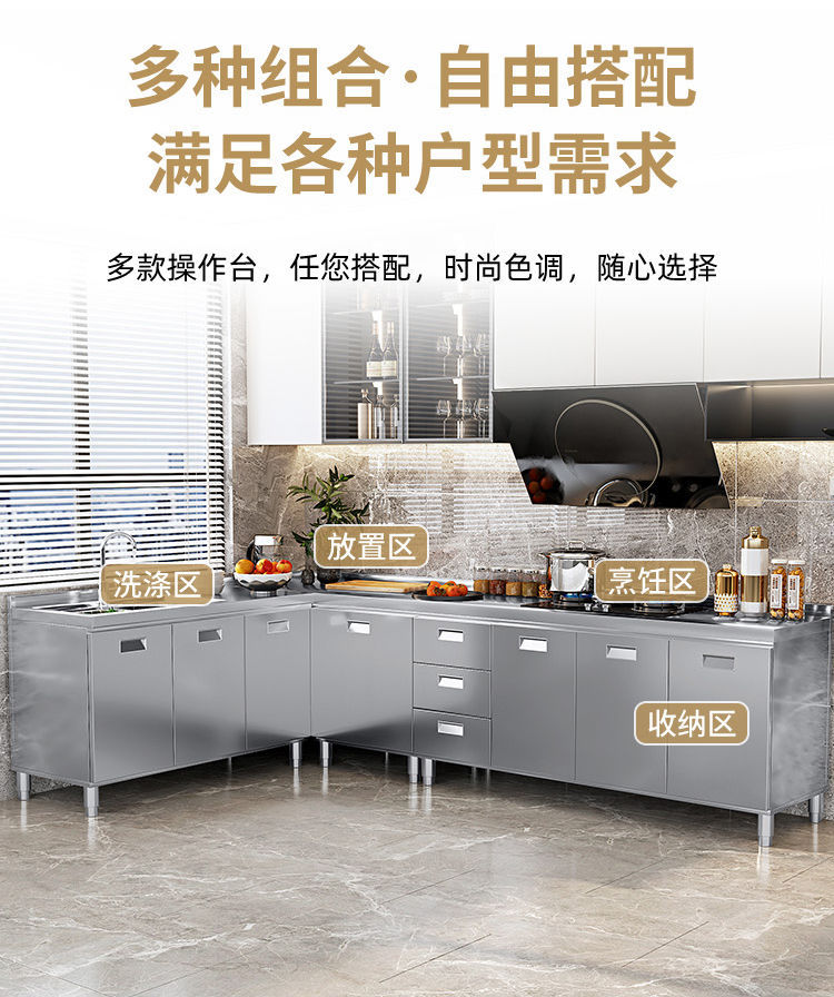 304 일체형 스테인레스 스틸 캐비닛, 두꺼운 주방 캐비닛, 스토브 캐비닛, 일체형 가정용 싱크대 캐비닛, 보관 캐비닛, 찬장스토어 가기