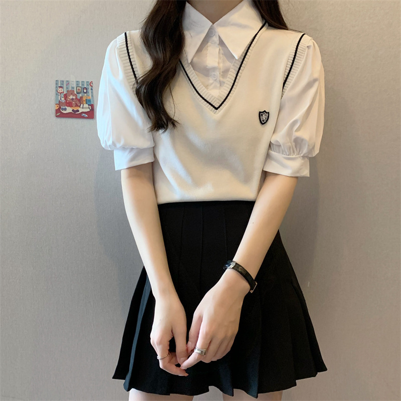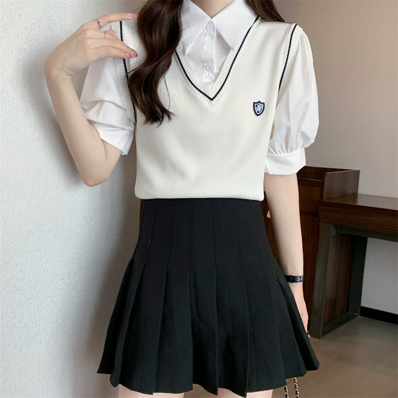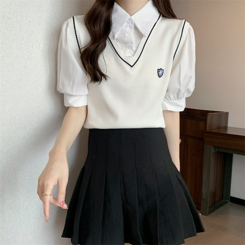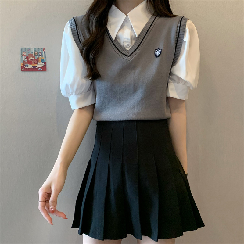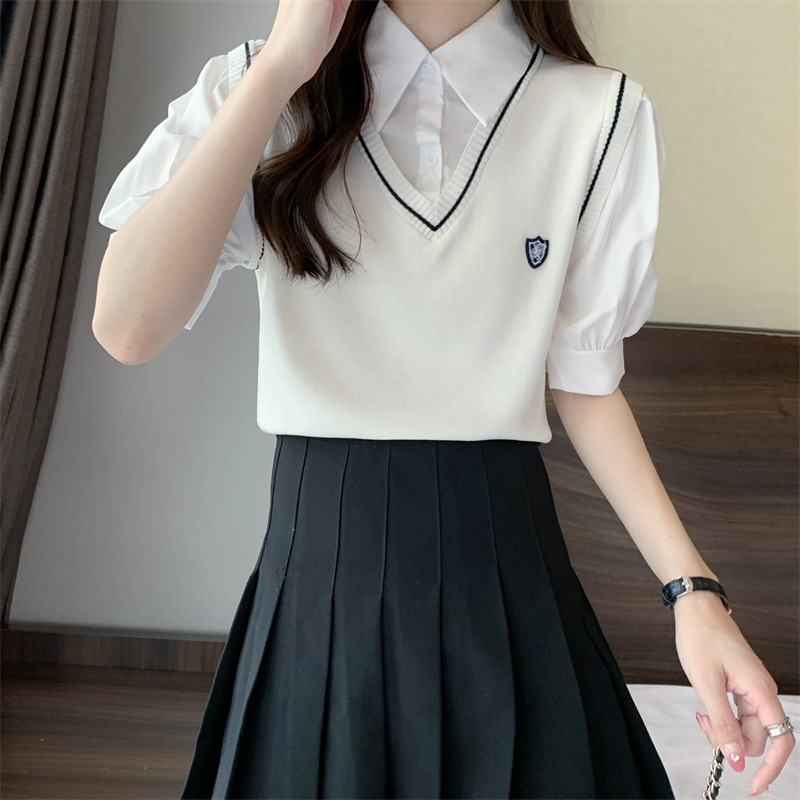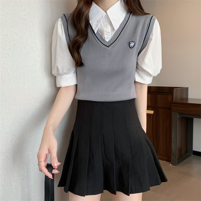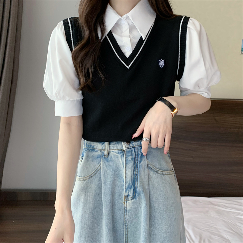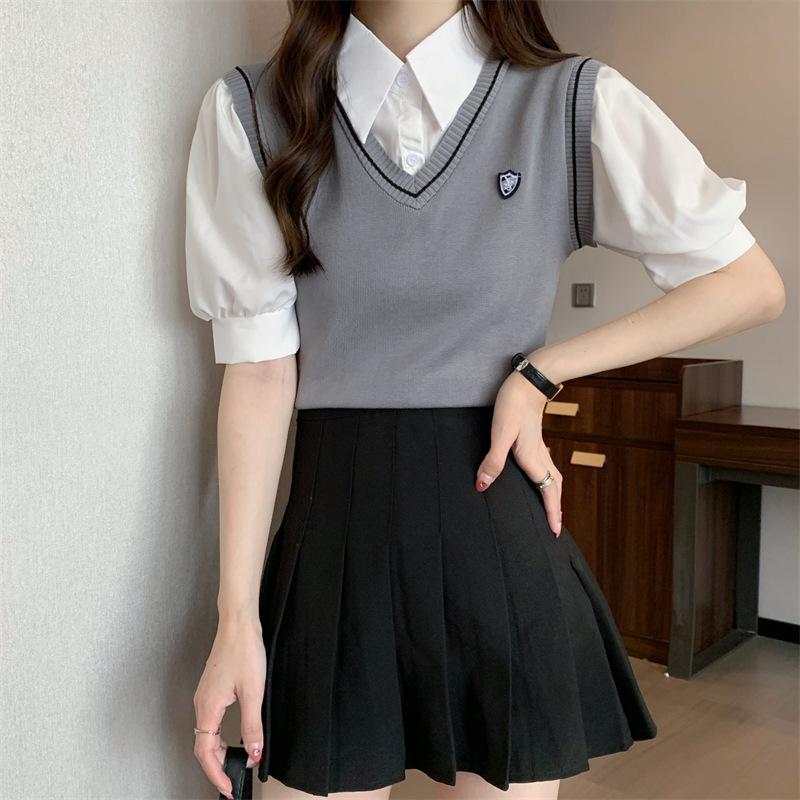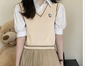 컬러 블록 대학 스타일 니트 조끼 가을 다목적 통근 캐주얼 스타일 루즈 트렌디 여성 니트스토어 가기