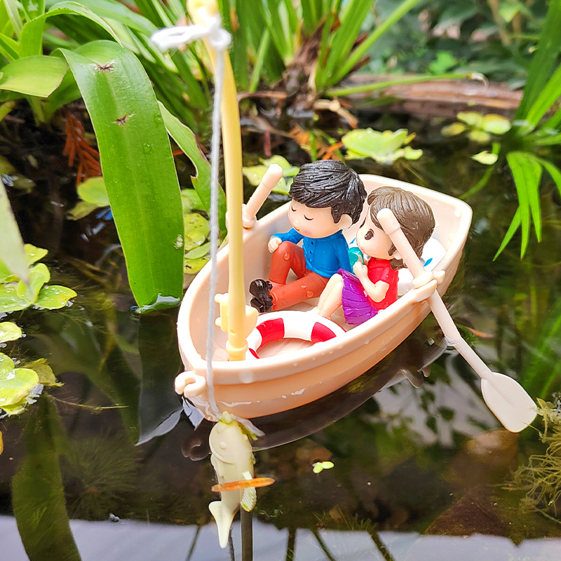 미니 플로팅 보트 수영 반지 낚시 어선 수조 조경 모델 장난감 마이크로 풍경 diy 장식품스토어 가기