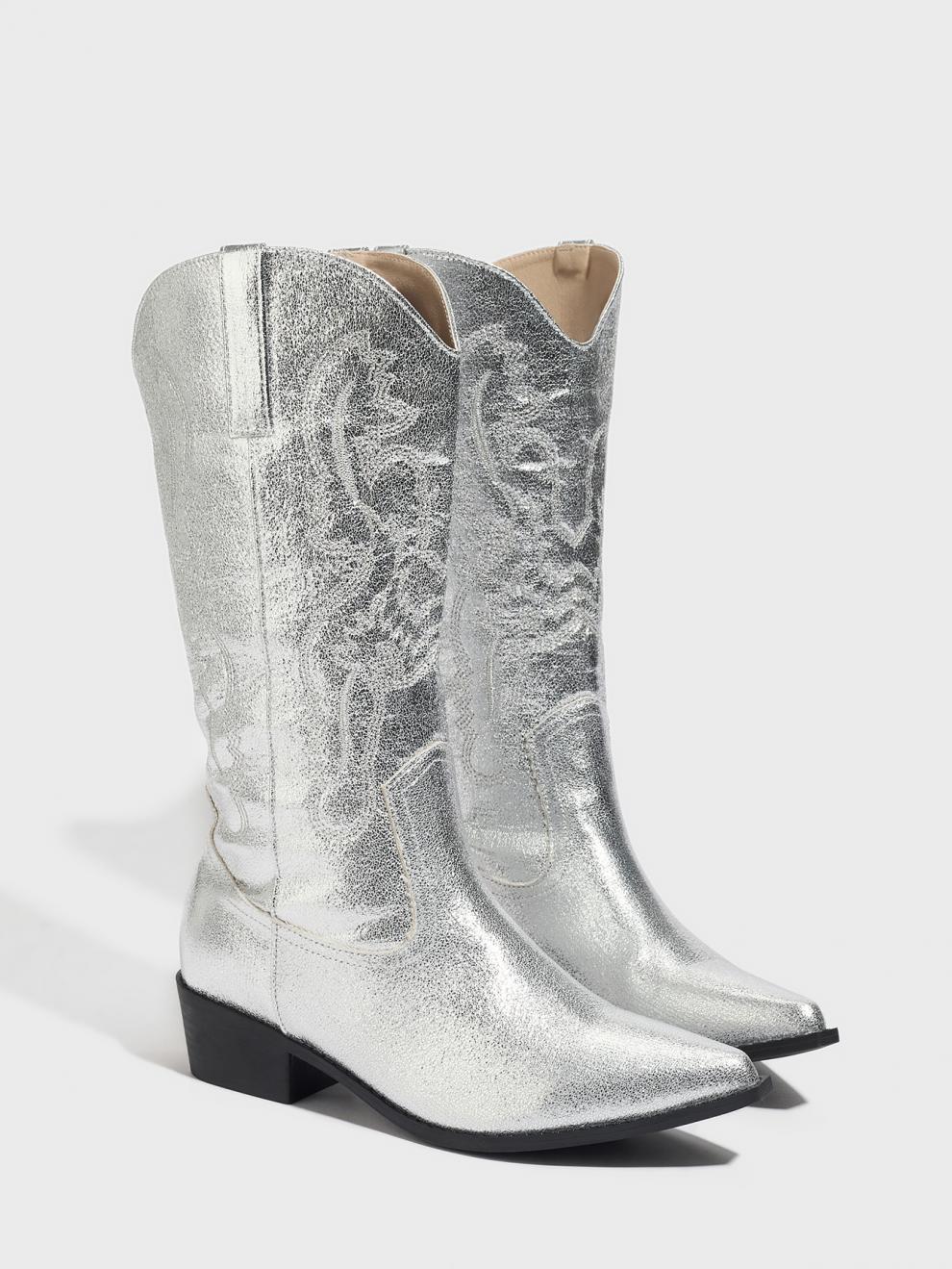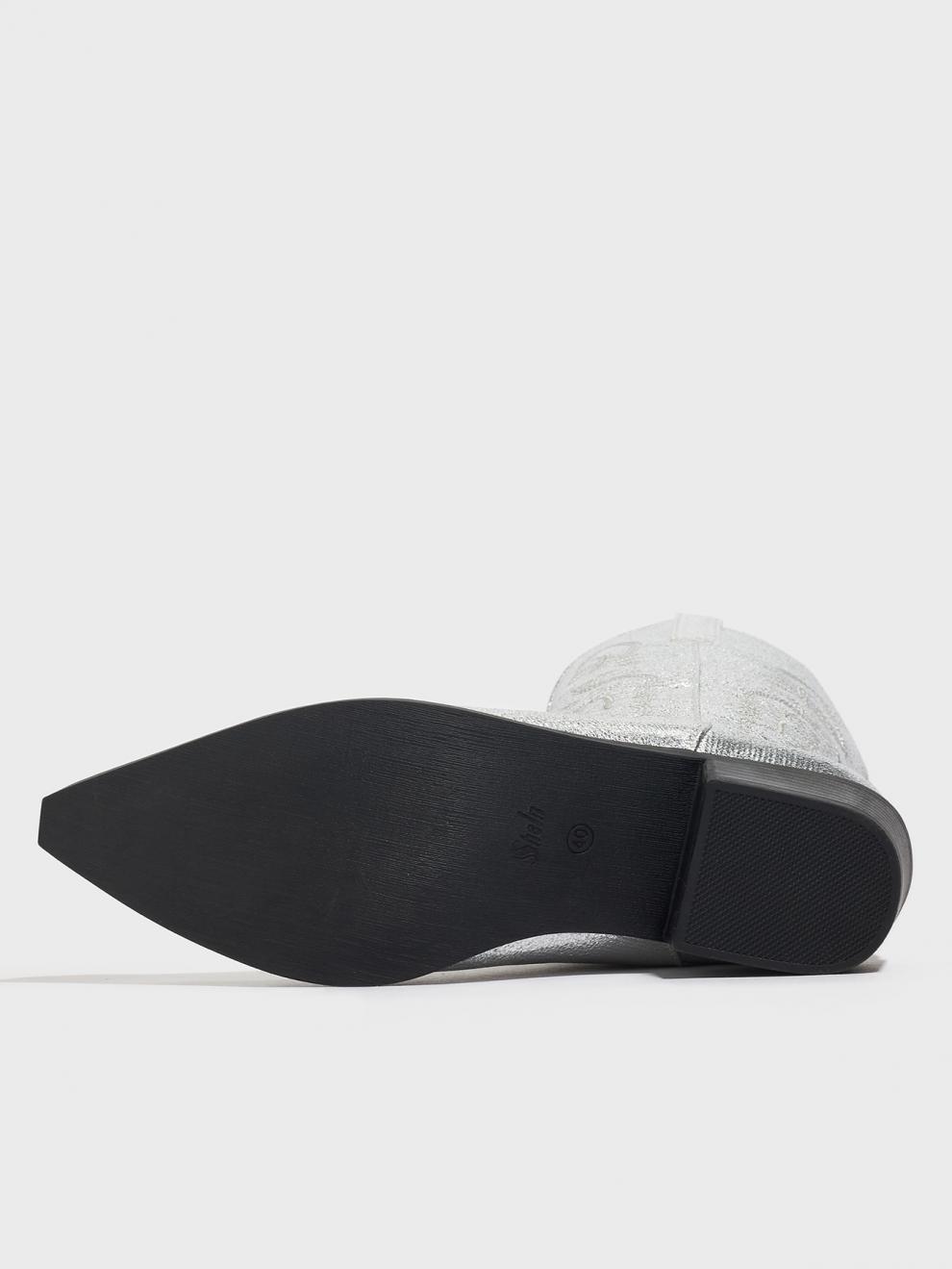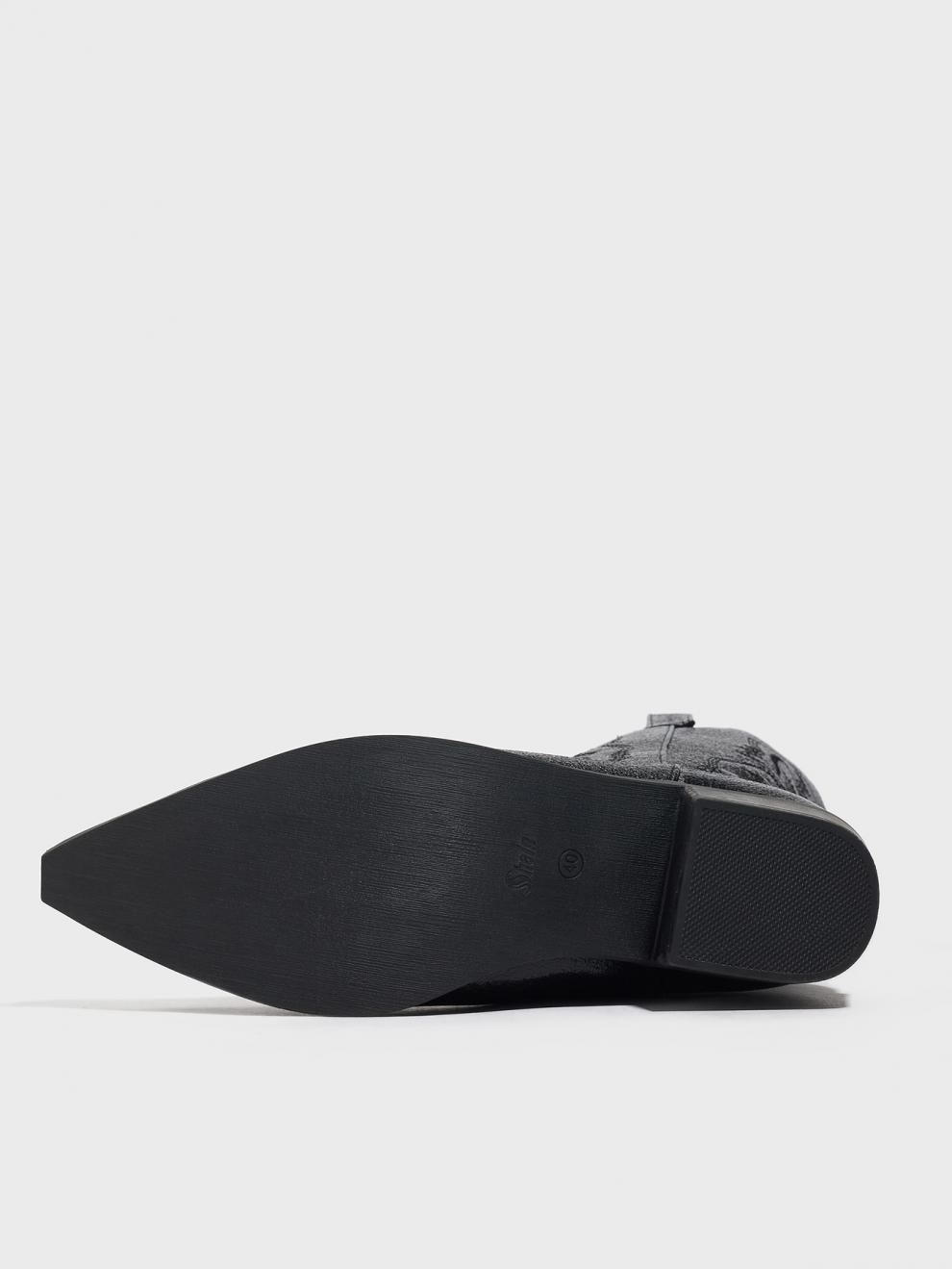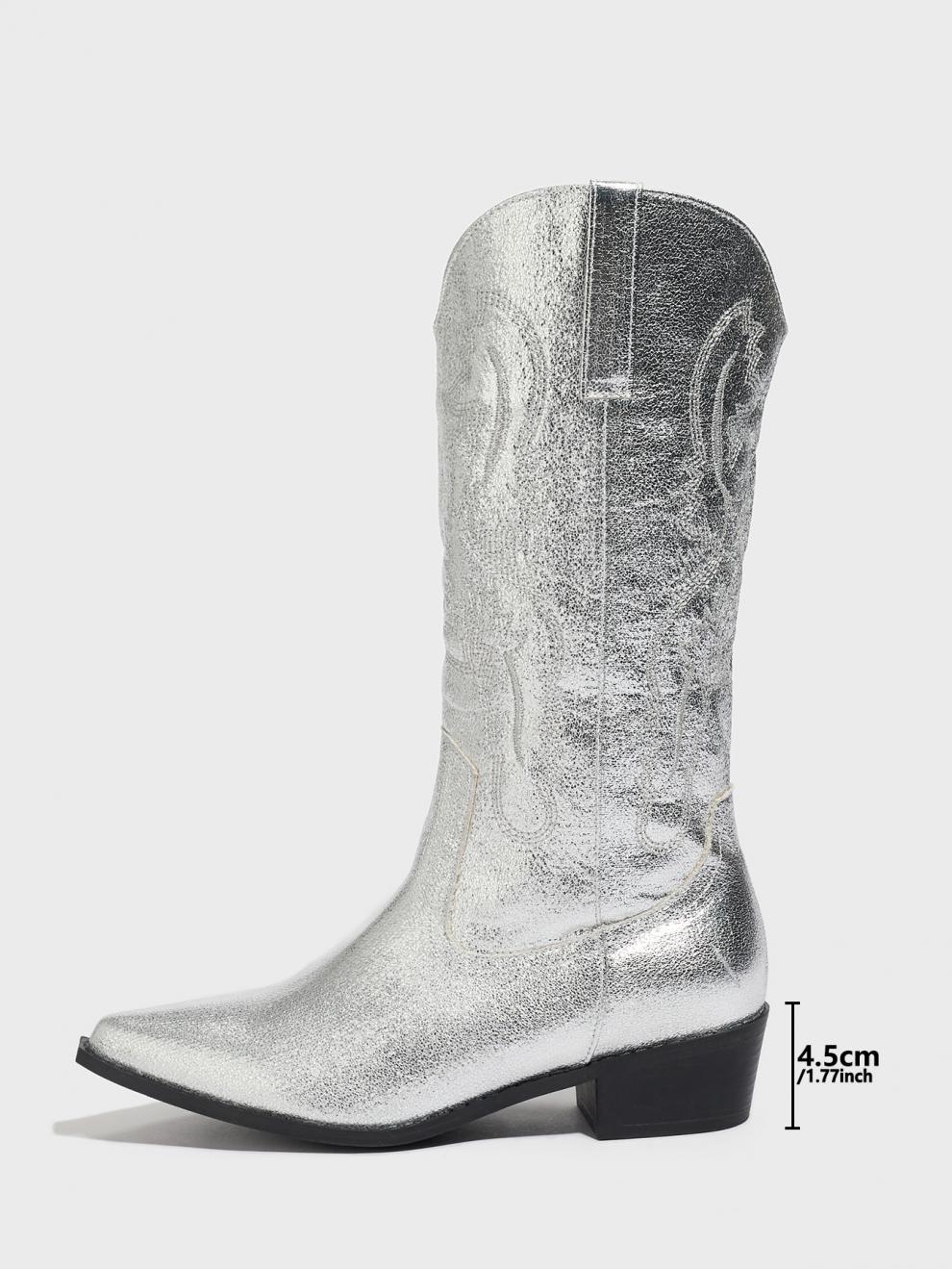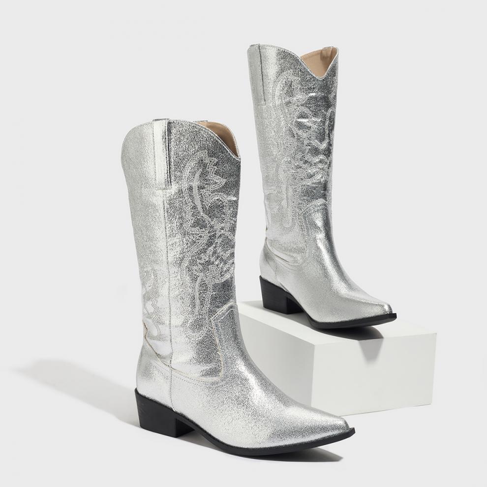 대외 무역 유럽 사이즈 대형 서양식 뾰족한 발가락 슬립온 두꺼운 굽 자수 중간 튜브 민족 스타일 복고풍 여성 신발