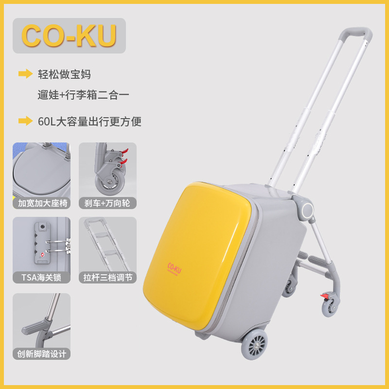Coku 어린이용 앉을 수 있는 가방 더블 폴 트롤리 박스 사이클링 박스 유모차 여행 가방 투인원