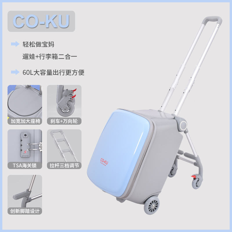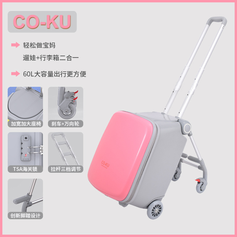 Coku 어린이용 앉을 수 있는 가방 더블 폴 트롤리 박스 사이클링 박스 유모차 여행 가방 투인원스토어 가기
