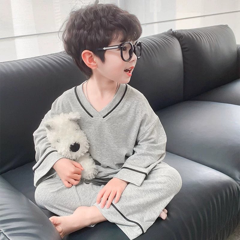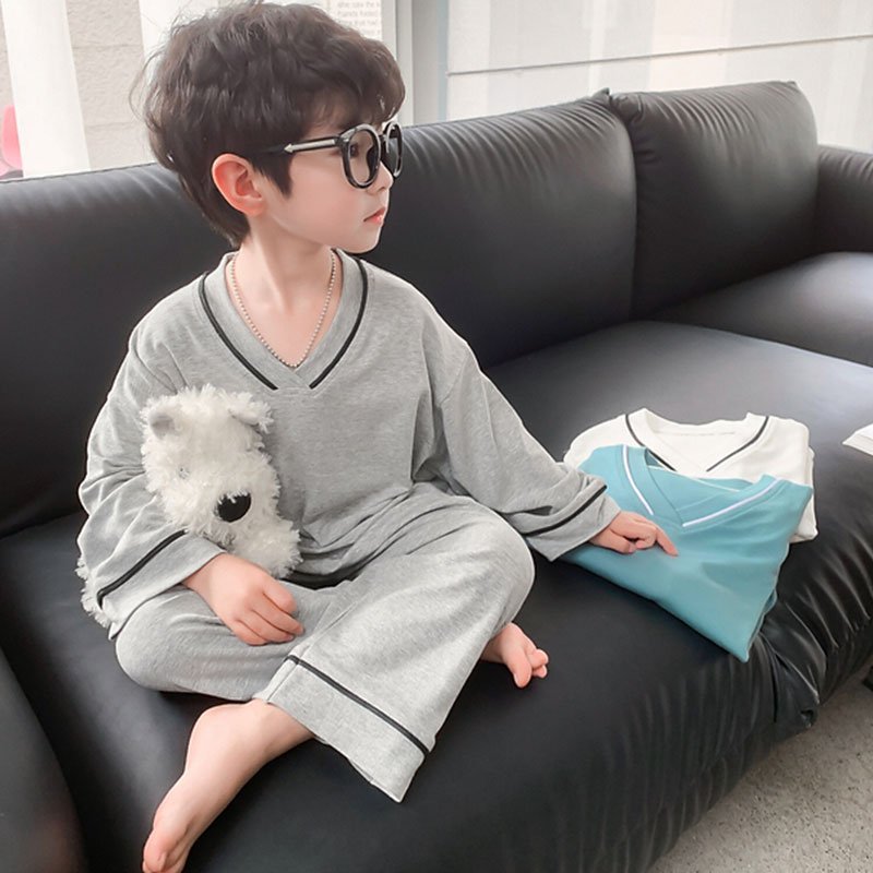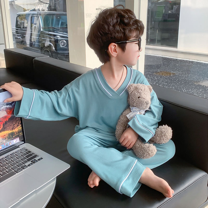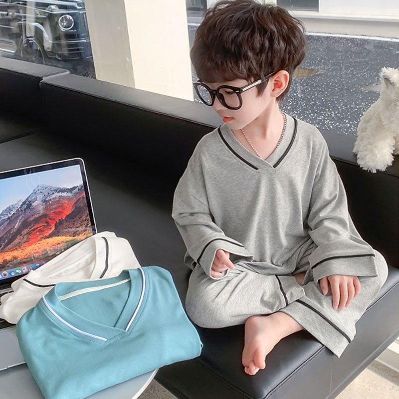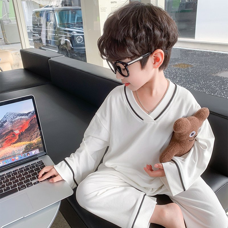 아동용 봄, 가을 긴팔 소년 잠옷 세트, 루즈하고 얇은 캐주얼 중대형 아동용 에어컨 의류, 소년 가정복스토어 가기