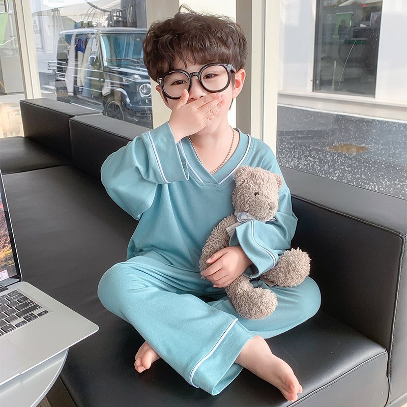 아동용 봄, 가을 긴팔 소년 잠옷 세트, 루즈하고 얇은 캐주얼 중대형 아동용 에어컨 의류, 소년 가정복
