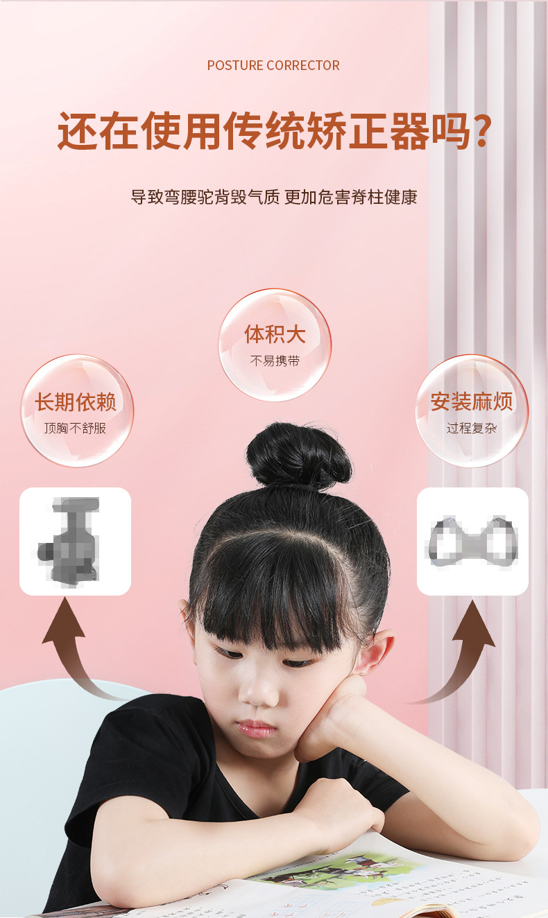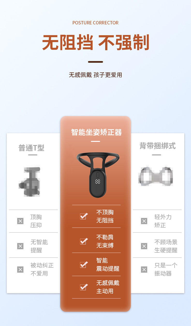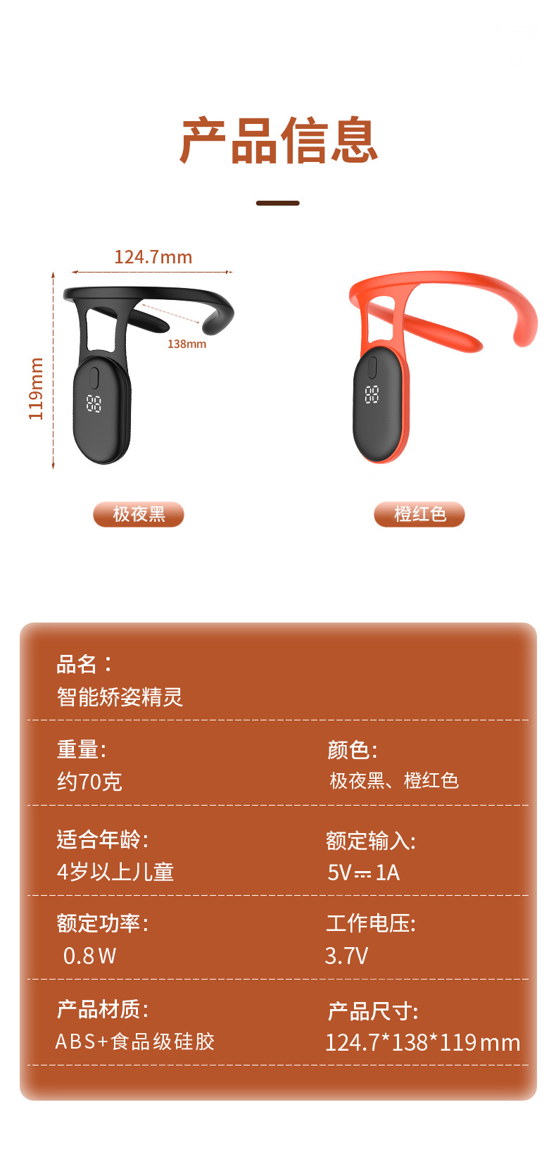 진동 LCD 목걸이형 어린이 앉은 자세 교정 도구가 포함된 새로운 크로스보더 꼽추 교정 벨트 가슴을 올려 스트레칭하는 도구