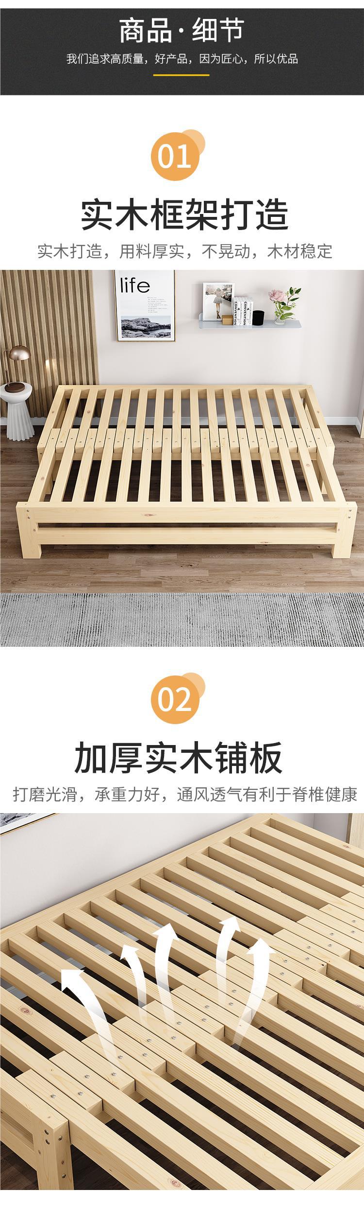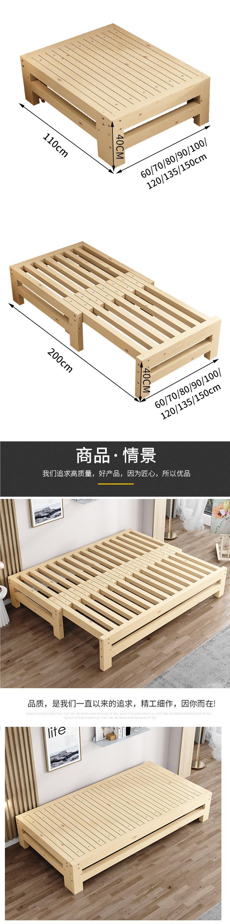 단단한 나무 간단한 소파 침대 다다미 풀 다기능 이중 목적 텔레스코픽 침대 점심 휴식 슬라이딩 침대 소형 도매스토어 가기