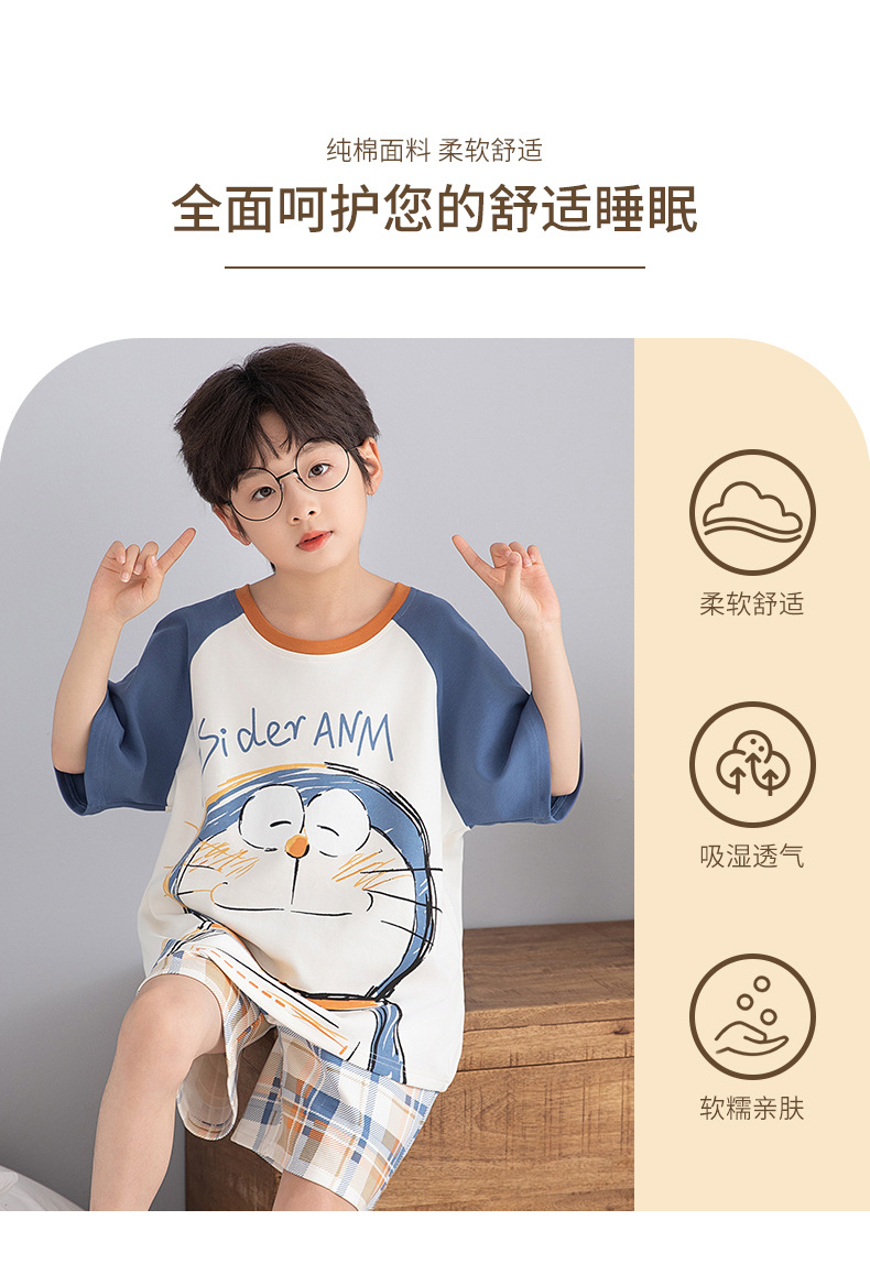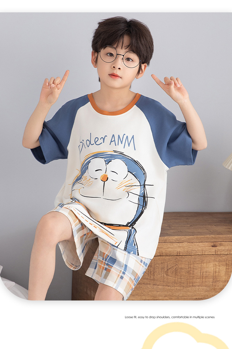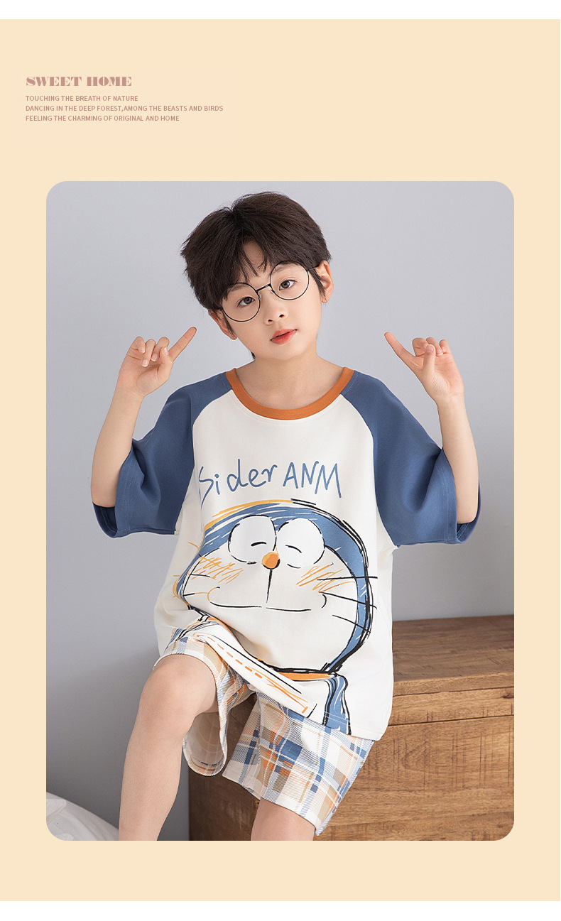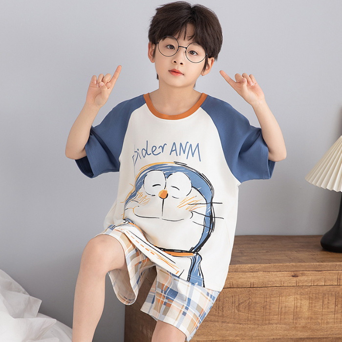 한국 스타일 소년 잠옷 여름 반팔 반바지 순수 코튼 소년 소년 중대형 어린이 만화 가정 의류 아동복