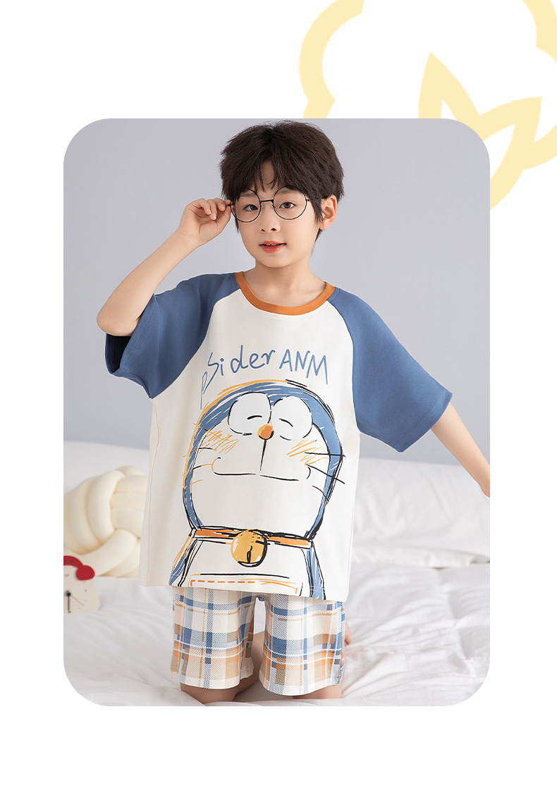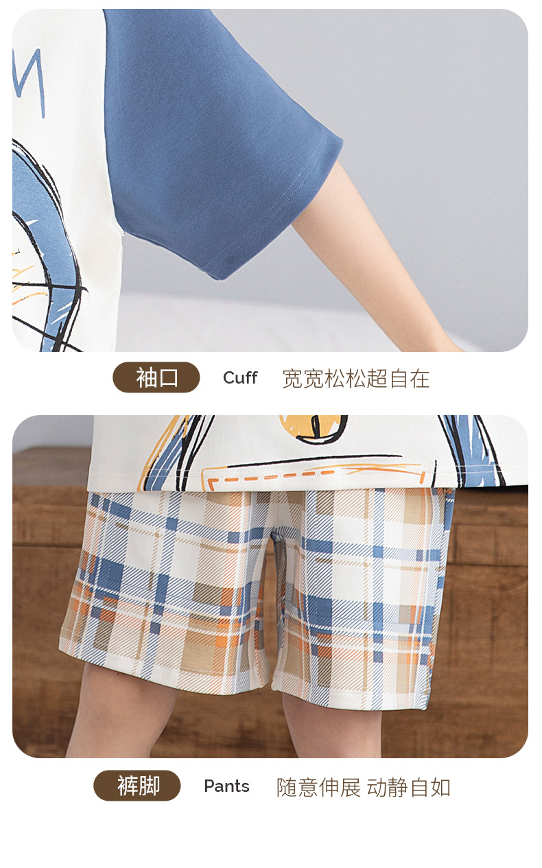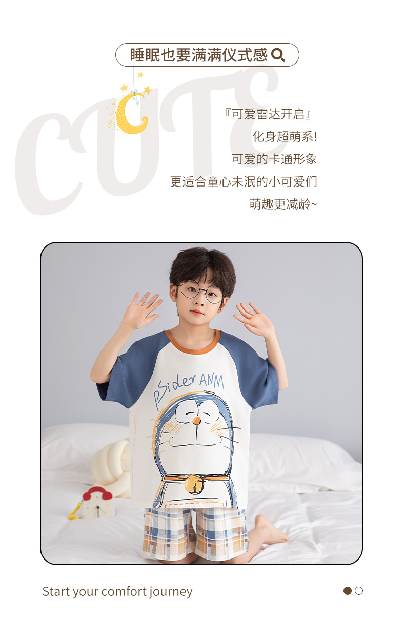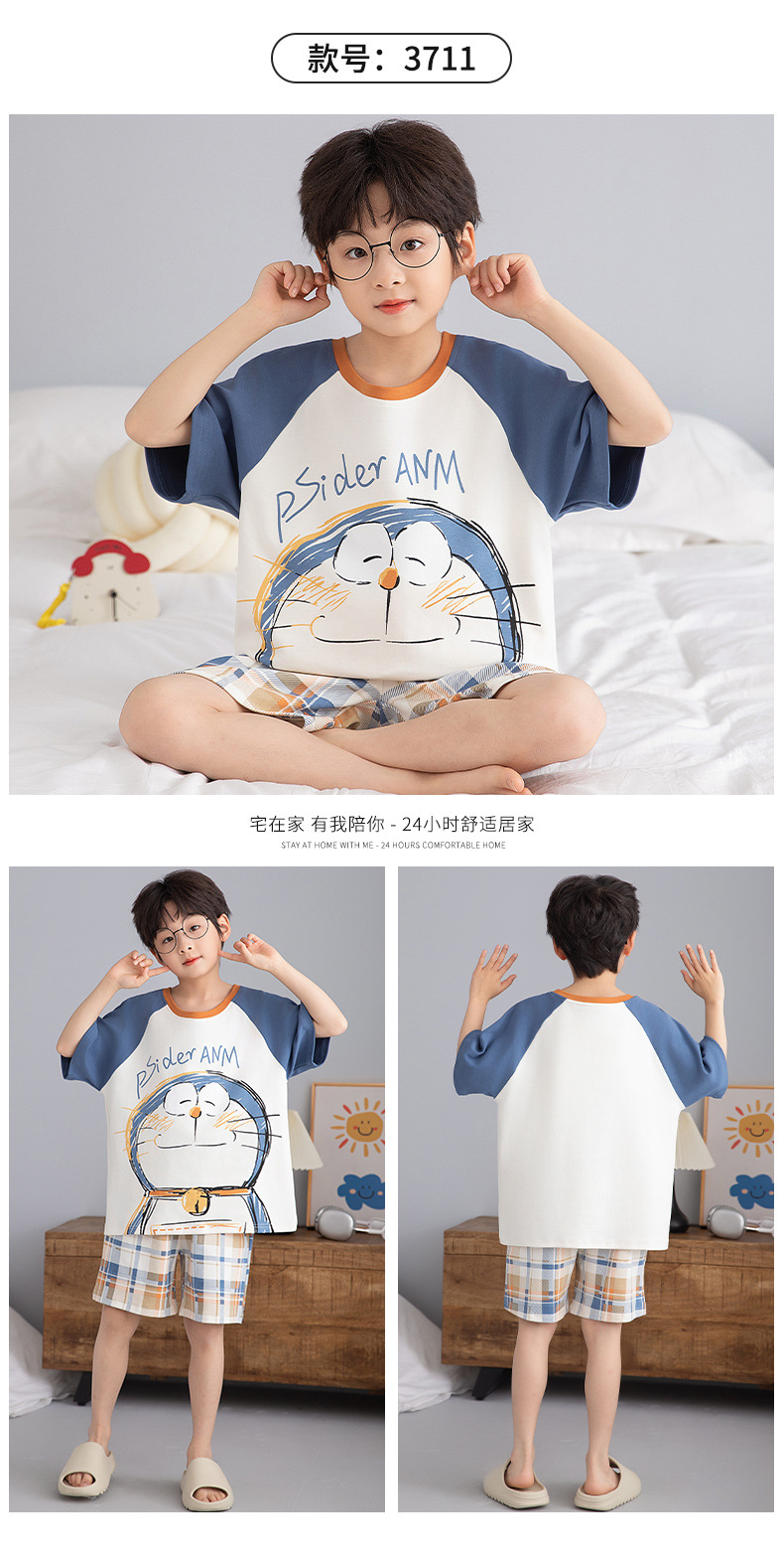 한국 스타일 소년 잠옷 여름 반팔 반바지 순수 코튼 소년 소년 중대형 어린이 만화 가정 의류 아동복