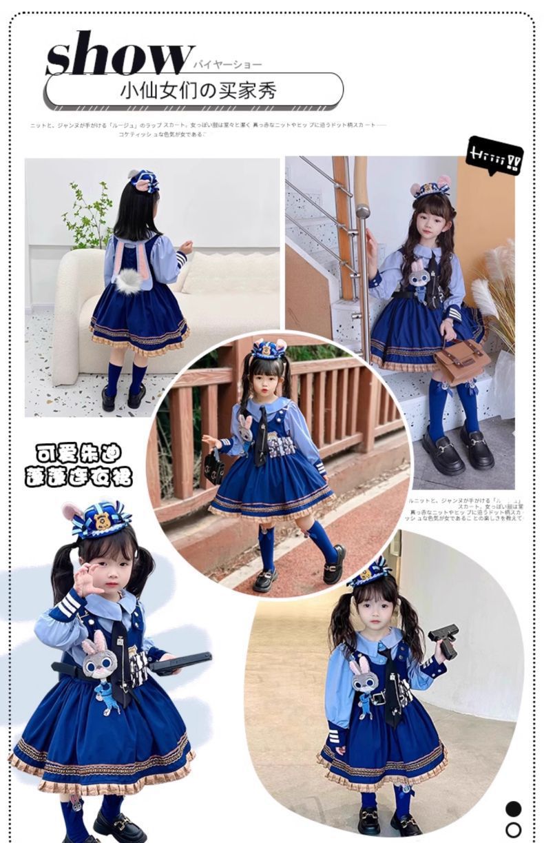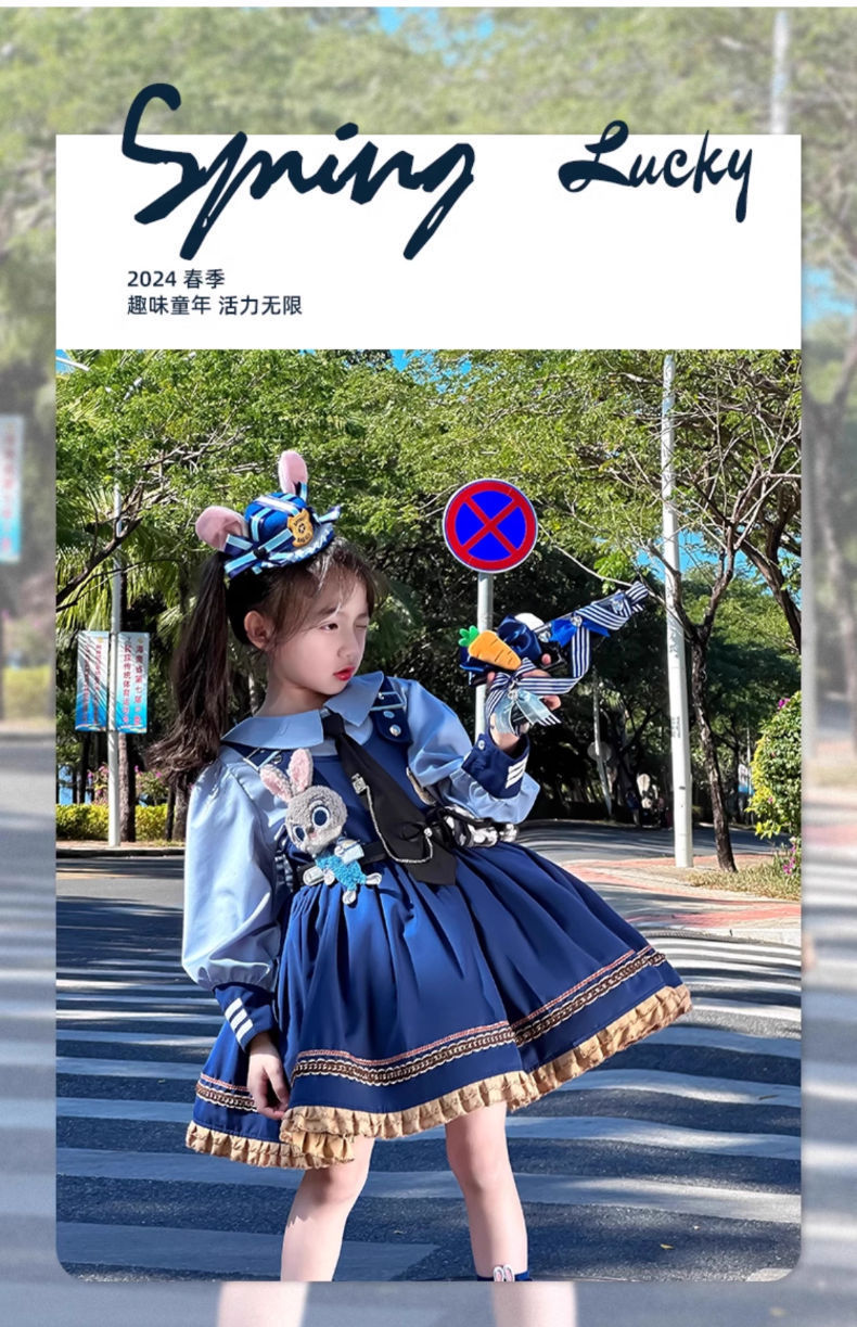 2026 봄 여름 드레스 여아 스커트 트렌디한 어린이용 주디 토끼 경찰관 로리타 여아 공주 드레스스토어 가기