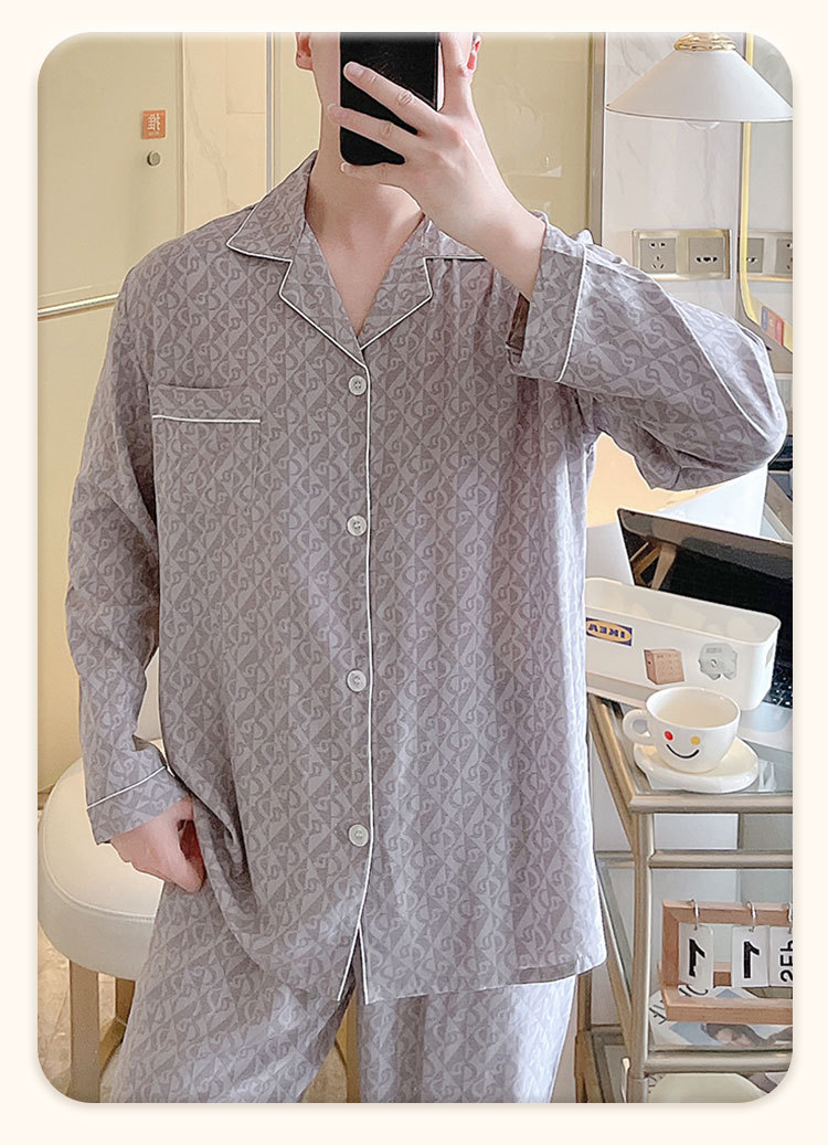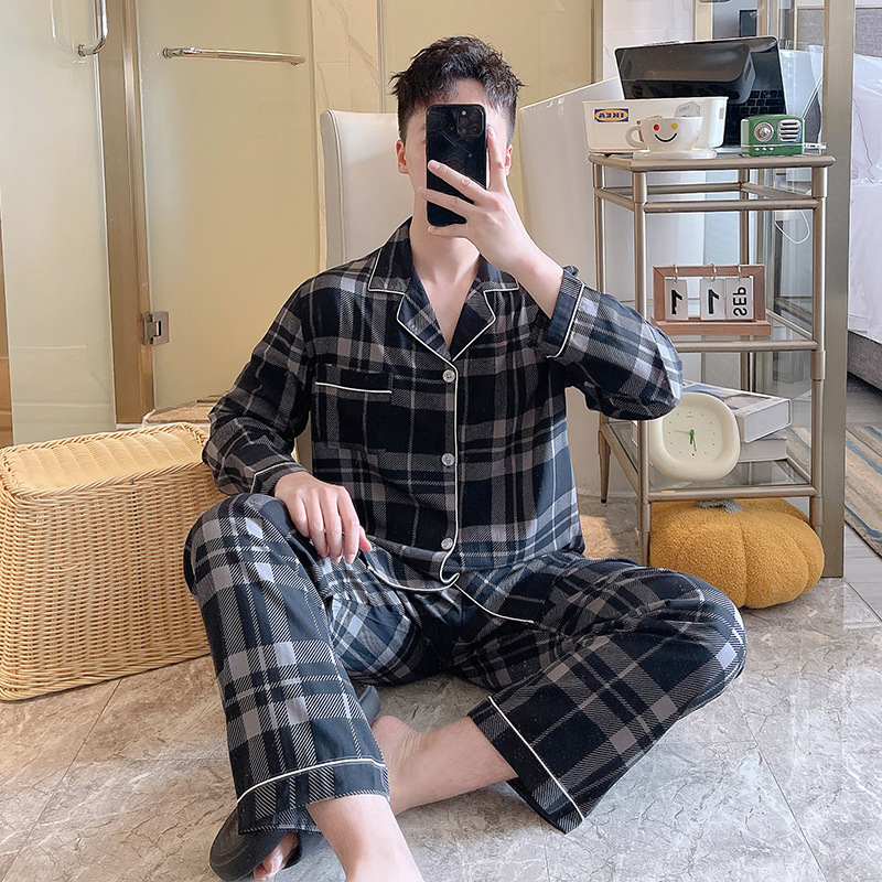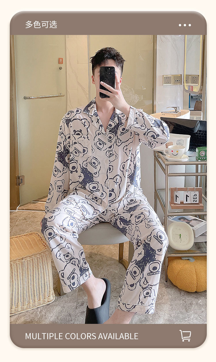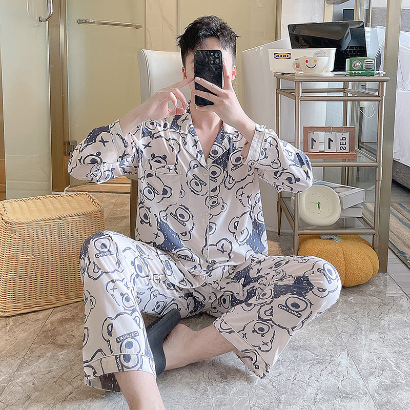 남성용 면 실크 잠옷 봄 가을용 카라 긴팔 신상 여름 얇은 대형 사이즈 인조 면 홈웨어스토어 가기