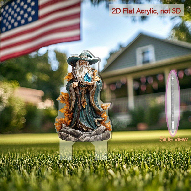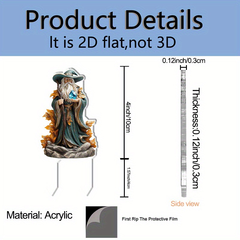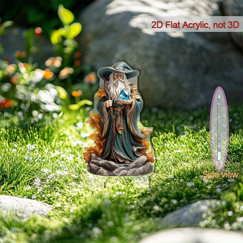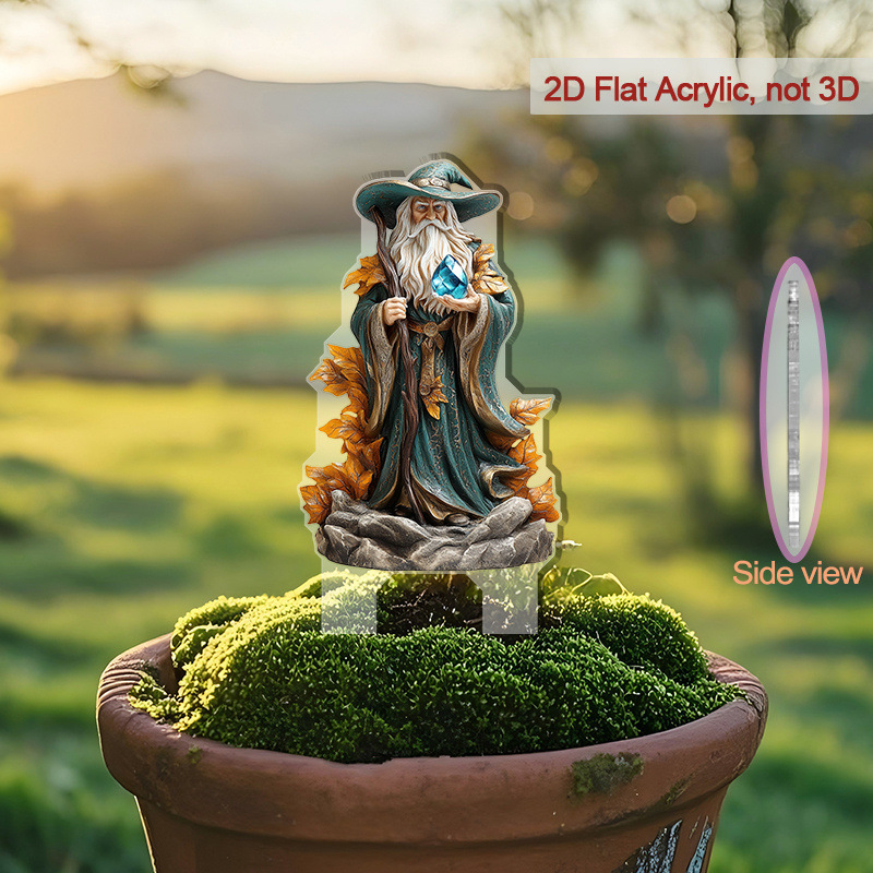 2D 평면 아크릴 고대 마법사 동상 플러그인 - 전원 공급 장치가 없는 전통 판타지 장식, 적용 가능