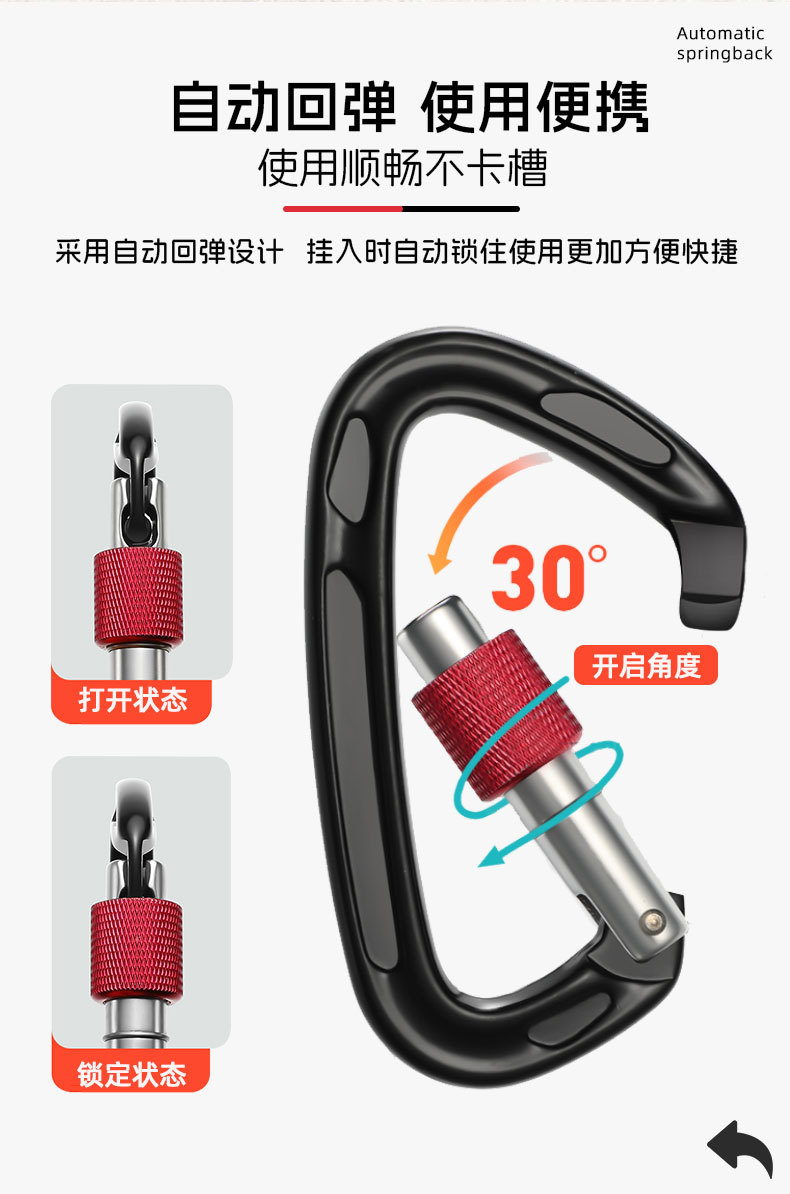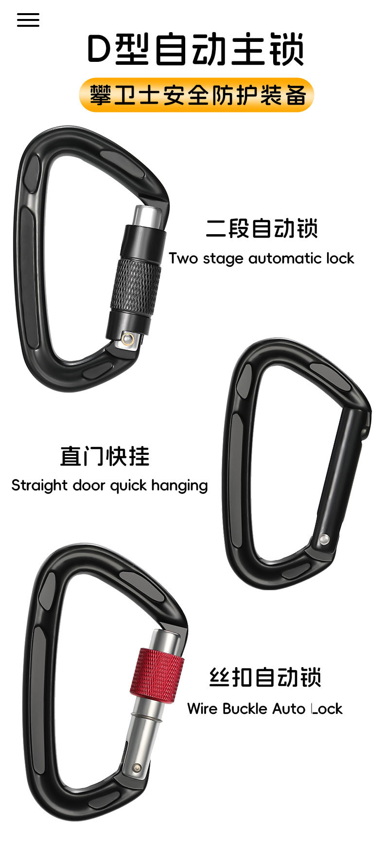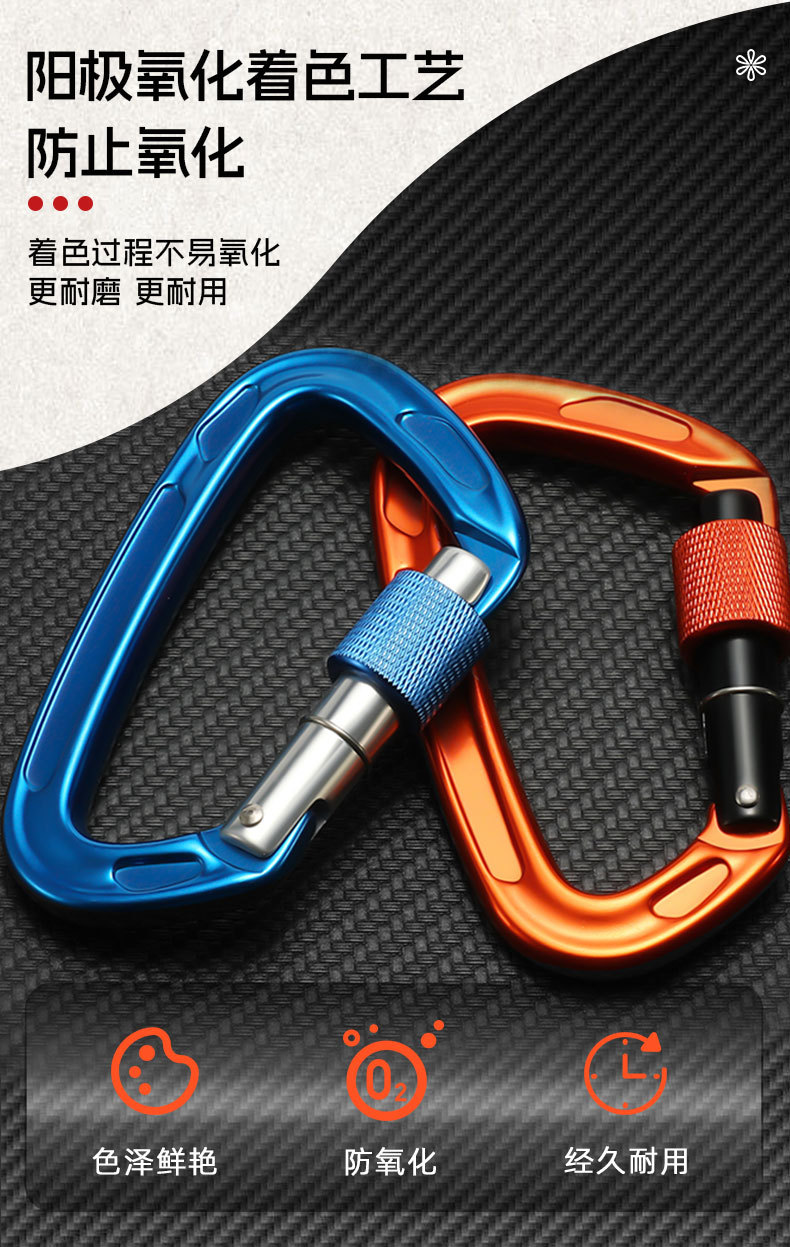 야외 등반 메인 잠금 장치, 래프팅 카라비너, 항공 알루미늄 내하중 퀵 릴리스 안전 버클 유형 나사식 메인 잠금 장치스토어 가기