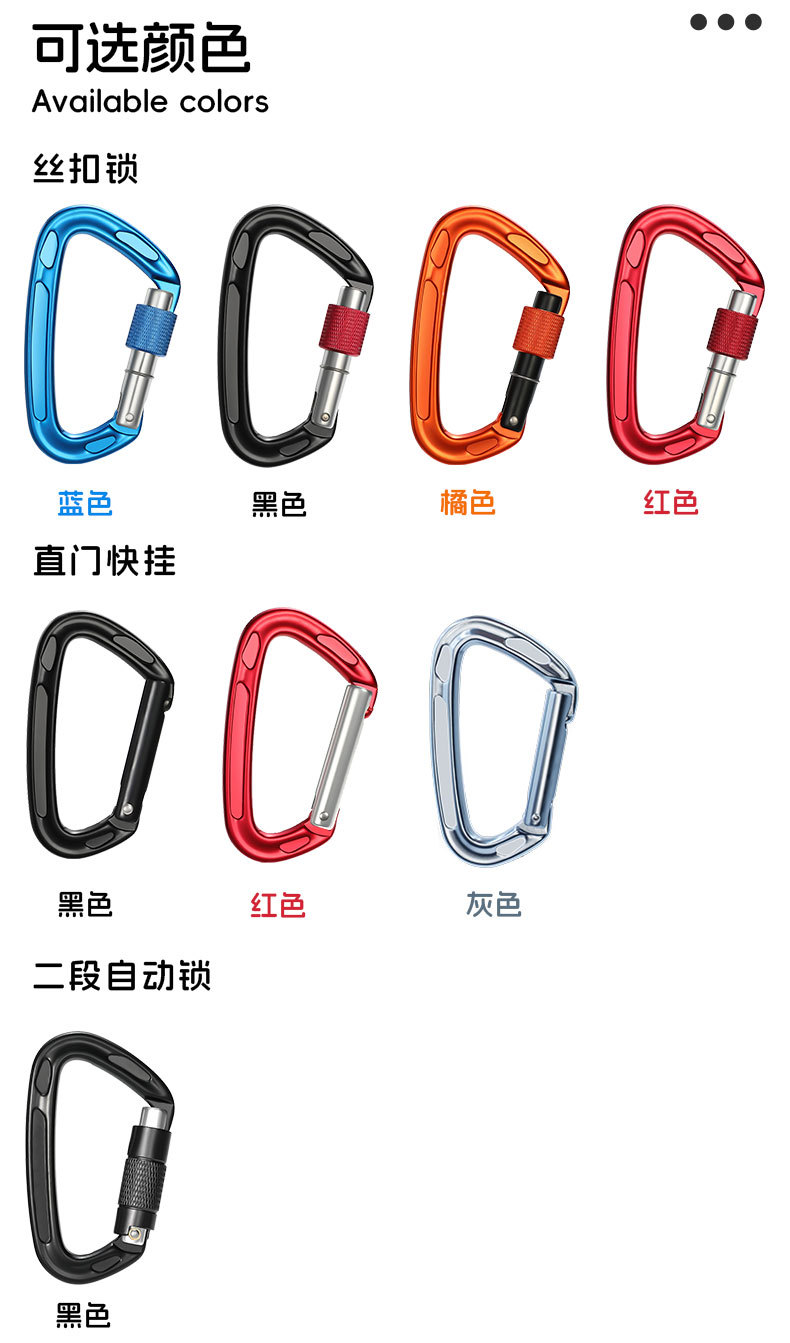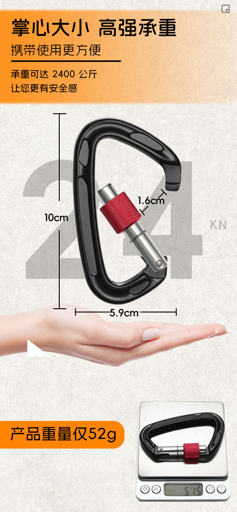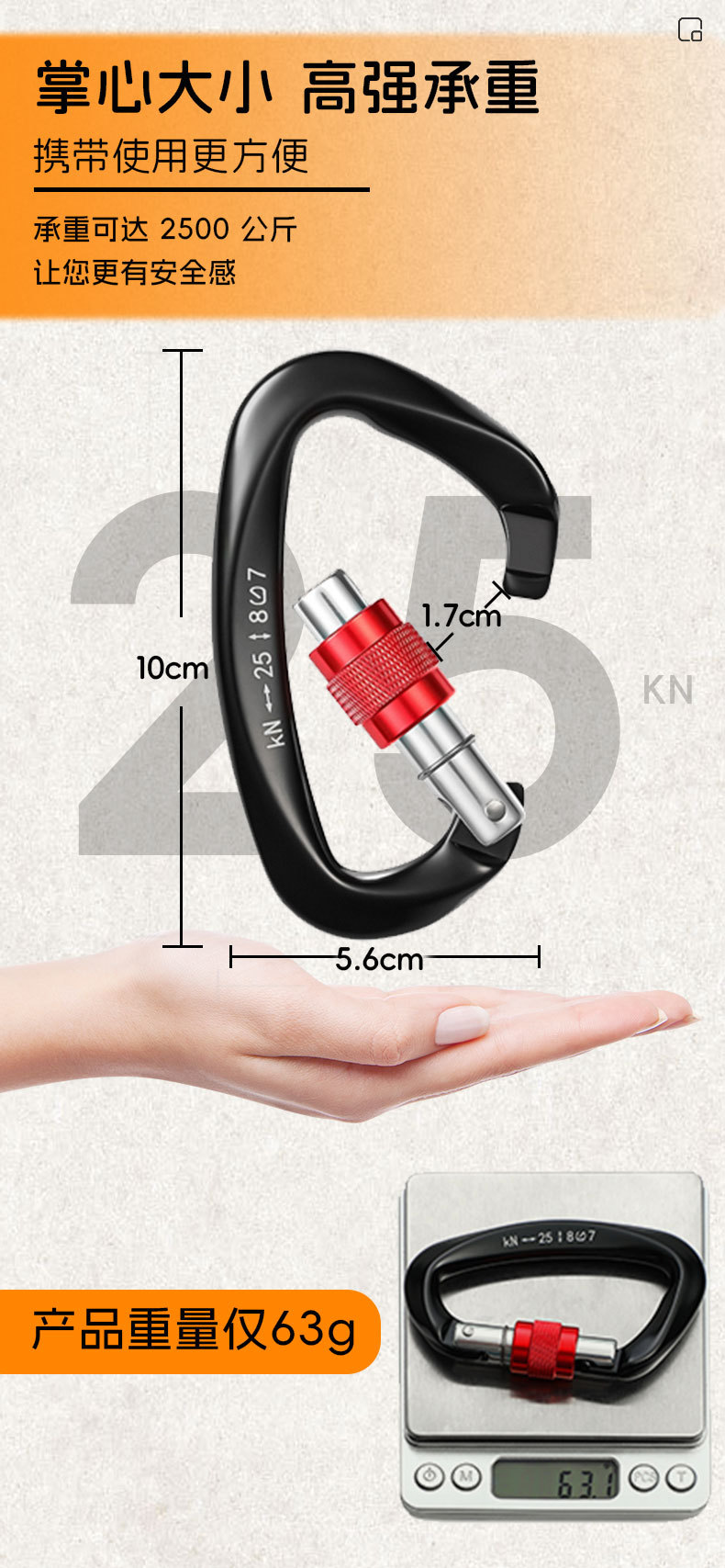 야외 등반 메인 잠금 장치, 래프팅 카라비너, 항공 알루미늄 내하중 퀵 릴리스 안전 버클 유형 나사식 메인 잠금 장치스토어 가기