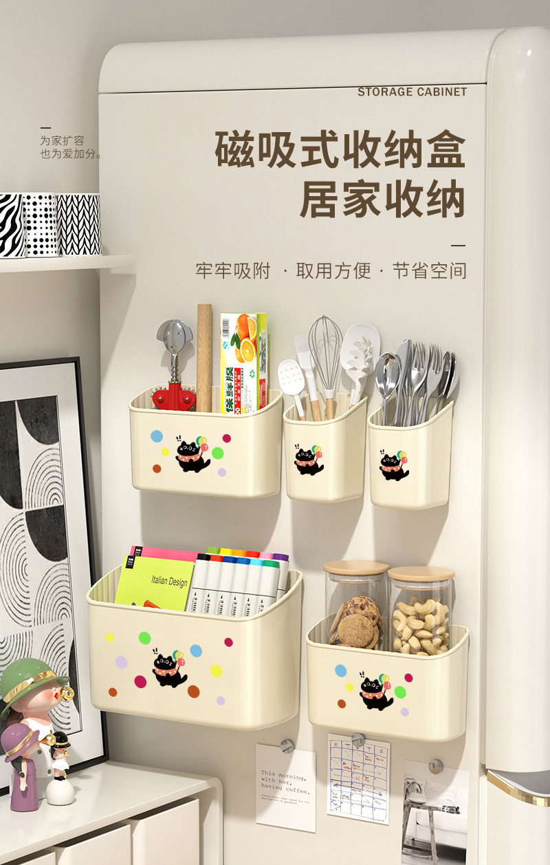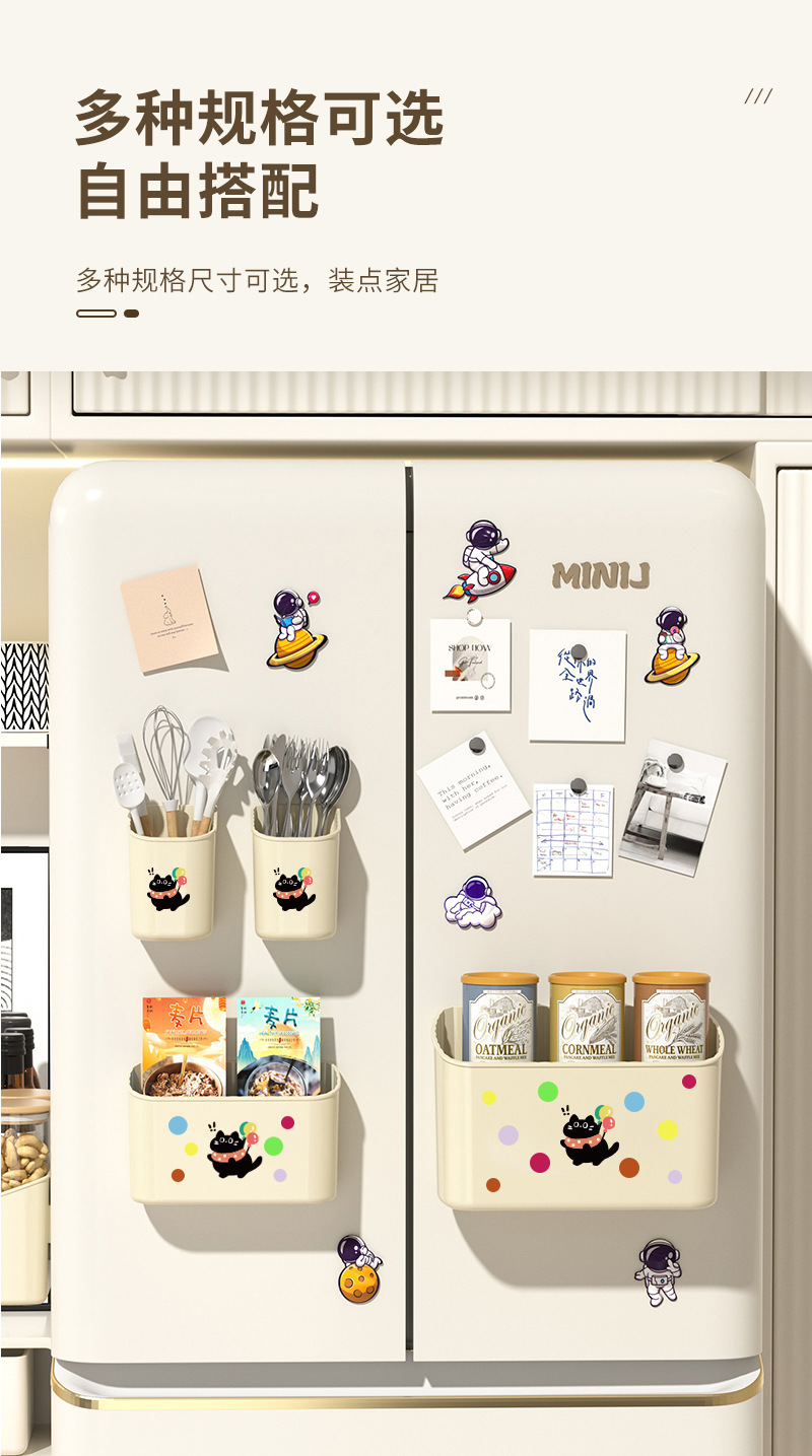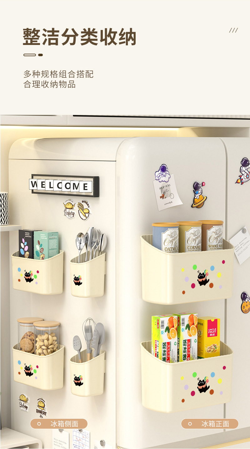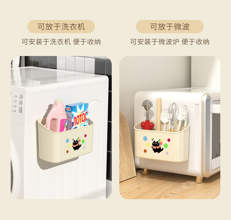 주방 펀치 없는 자기흡수박스 전자레인지 냉장고 세탁기 측면수납선반 벽걸이 잔해물수납박스