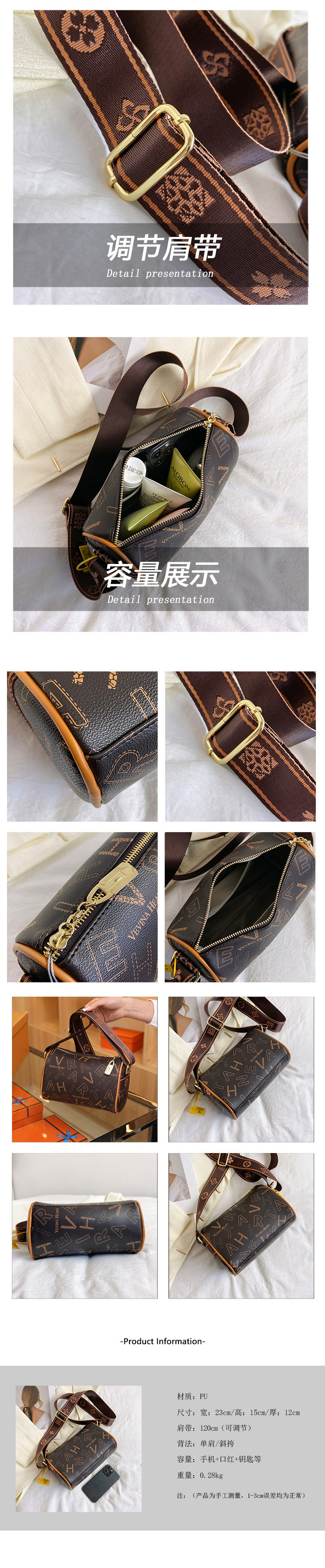 새로운 봄 여름 문자 질감 패션 베개 가방 다목적 외국 스타일 인쇄 대용량 싱글 숄더 보스턴 크로스 바디 백