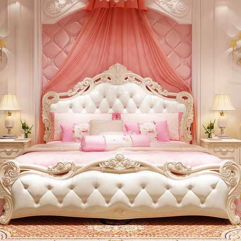 간단한 유럽 단단한 나무 공주 침대 작은 아파트 현대 간단한 홈 침실 핑크 웨딩 침대 프랑스어 빛 럭셔리 더블 침대