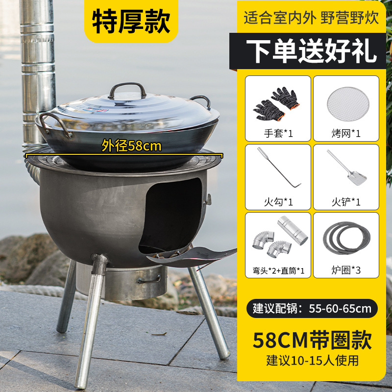 일체형 스토브 장작 스토브 가정용 농촌 장작 스토브 장작 모바일 스토브 대형 냄비 스토브 야외 랜드 스토브