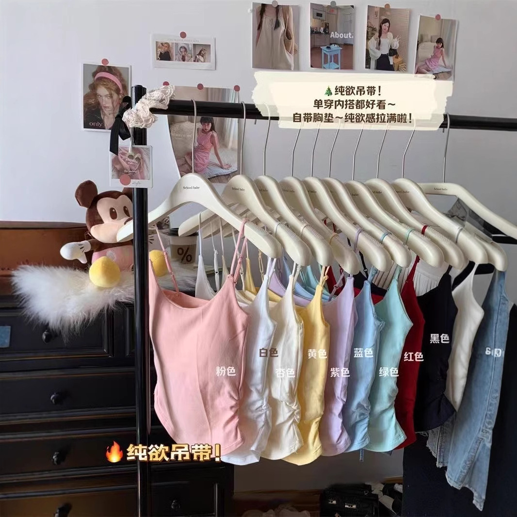 가슴 패드와 주름이 있는 여성용 순수 달콤하고 매콤한 캐미솔, 슬림핏 바텀, 여아용 슬리밍 튜브탑스토어 가기