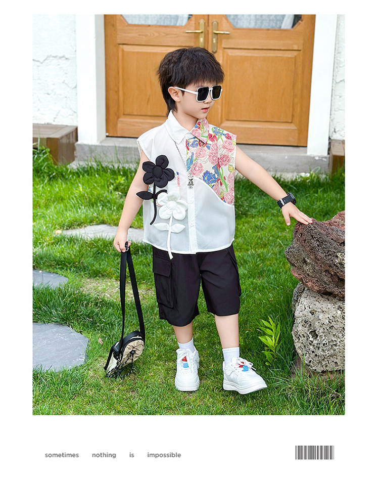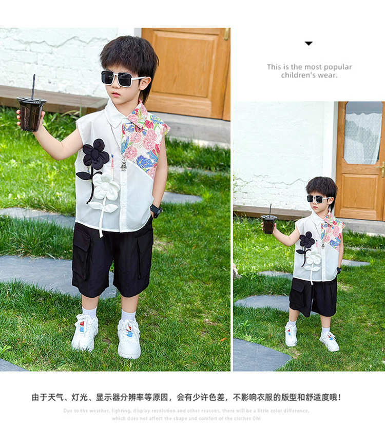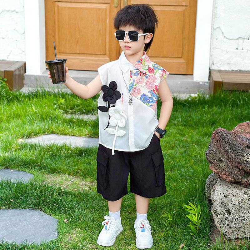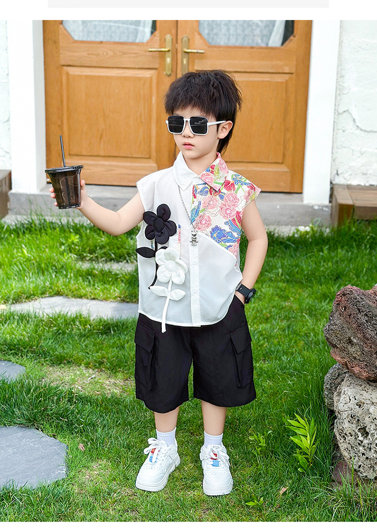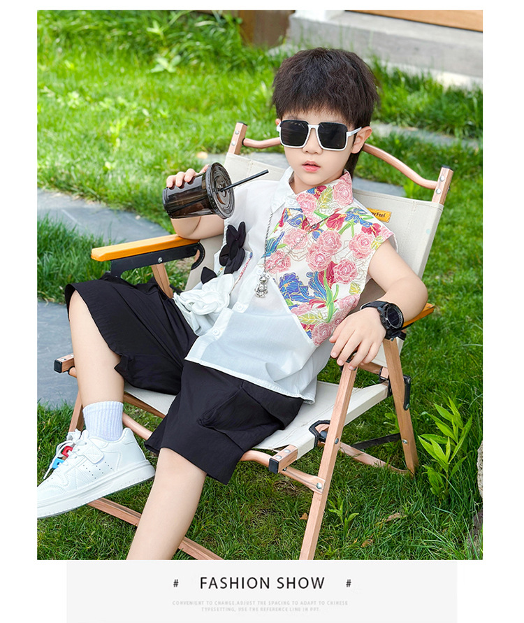 소년 정장 2025 여름 새로운 스타일 중국 스타일 작은 신사 셔츠와 조끼 투피스 세트 어린이 여름 얇은 옷스토어 가기