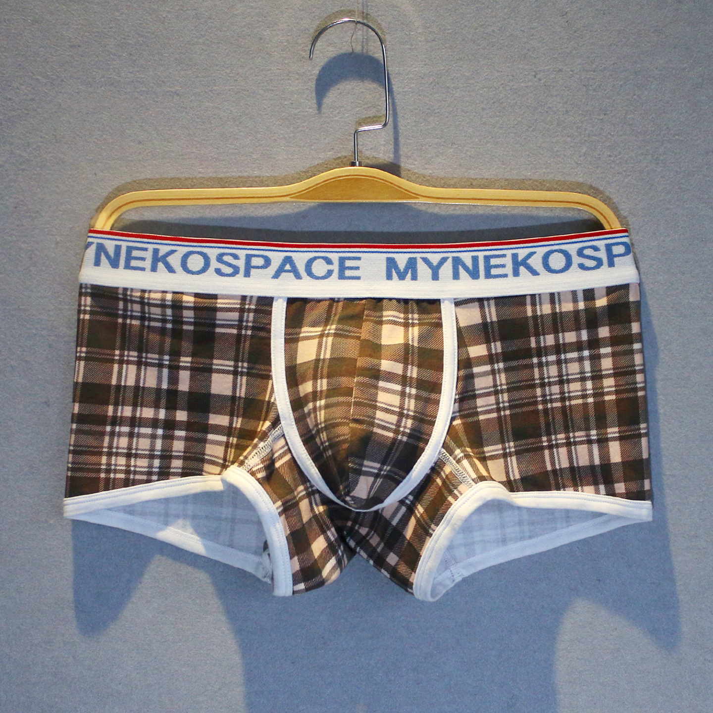 남성 속옷 순수 코튼 통기성 복고풍 격자 무늬 프린트 복서 팬티 청소년 패션 캐주얼 소년 복서 팬티스토어 가기