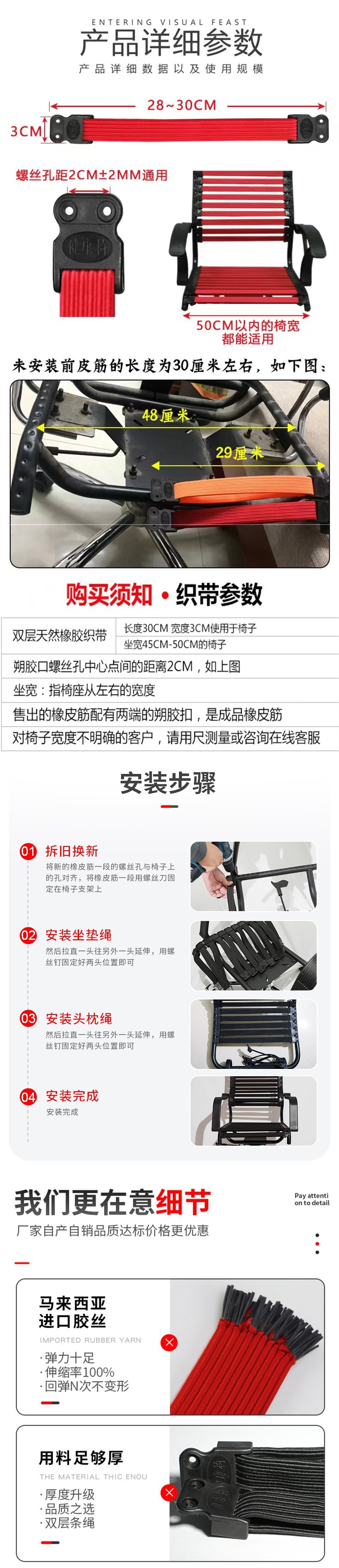 범용 두꺼운 건강 의자 고무 밴드 컴퓨터 홈 레크리에이션 자동차 의자 탄성 밴드 탄성 스트립 고무 밴드 로프 액세서리스토어 가기