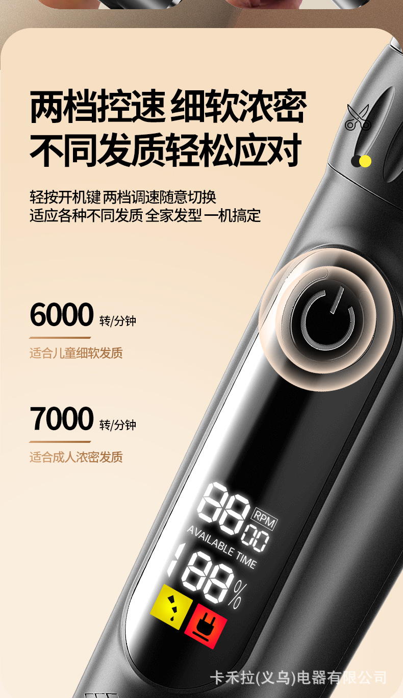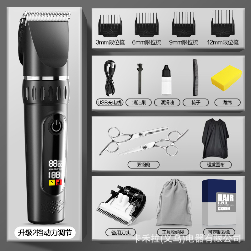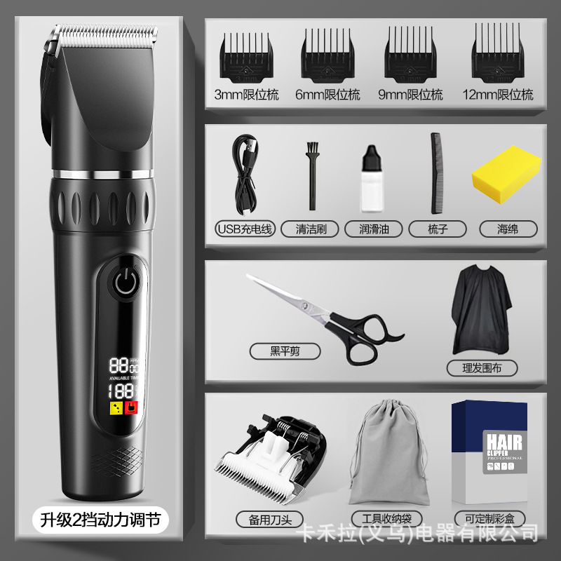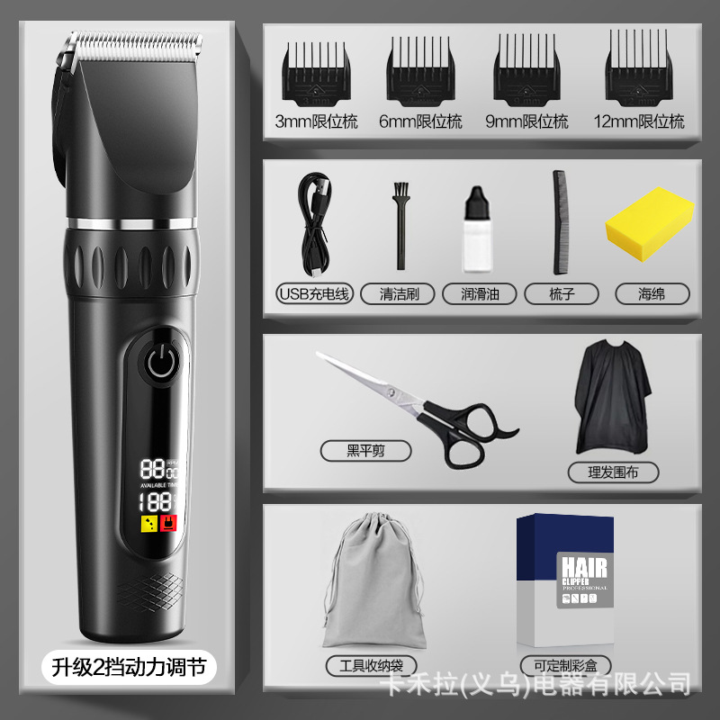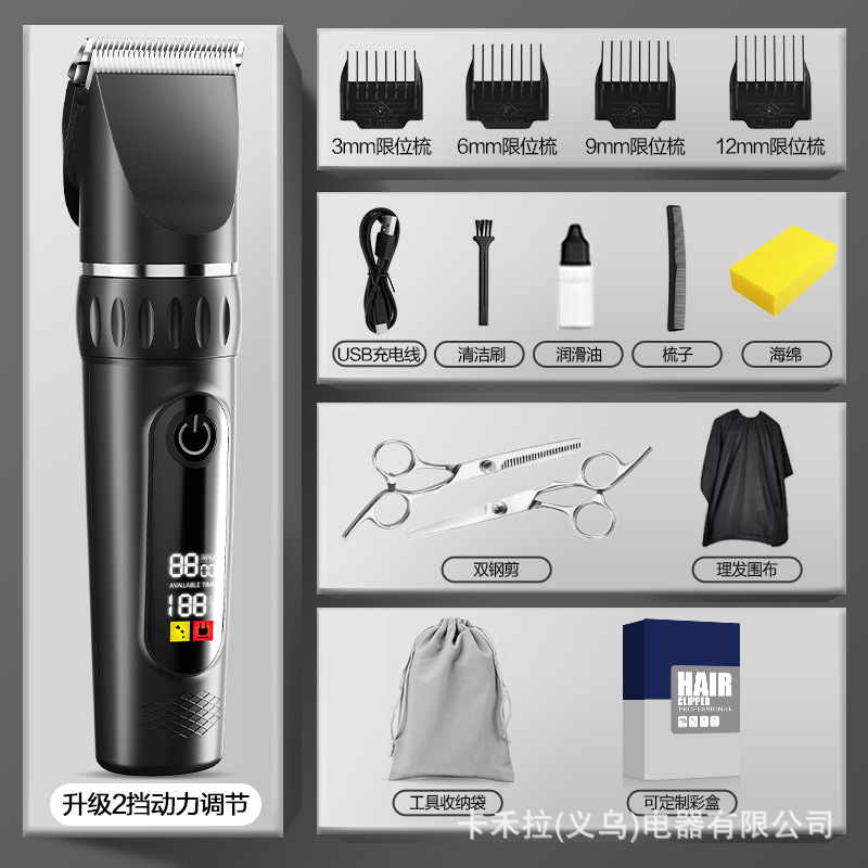 • 2단 속도 조절 - 고급형 디지털 표시 클래식 블랙 [커트 망토 + 이중 스틸 가위 + 두꺼운 세라믹 칼날 + 수납 가방]