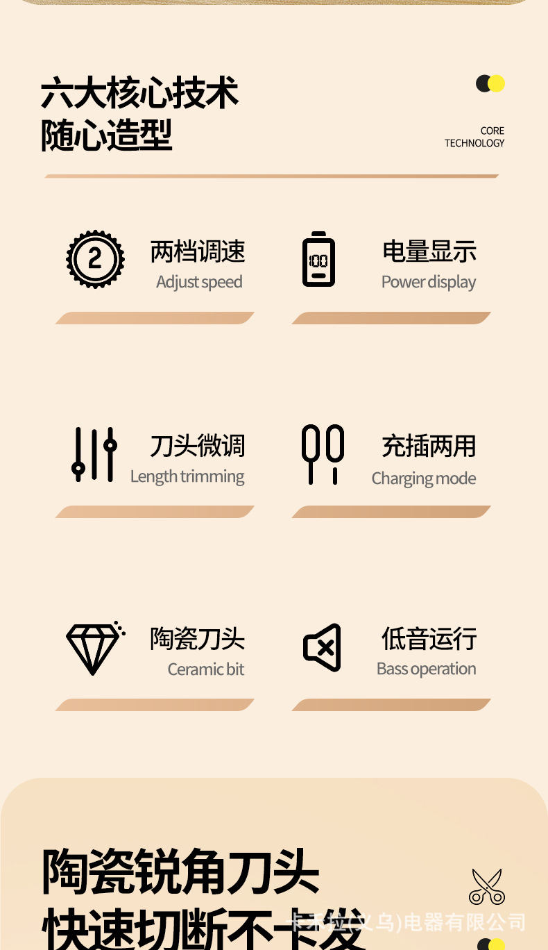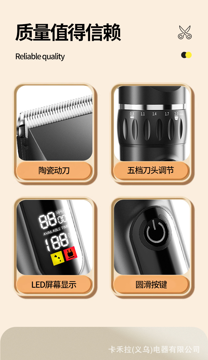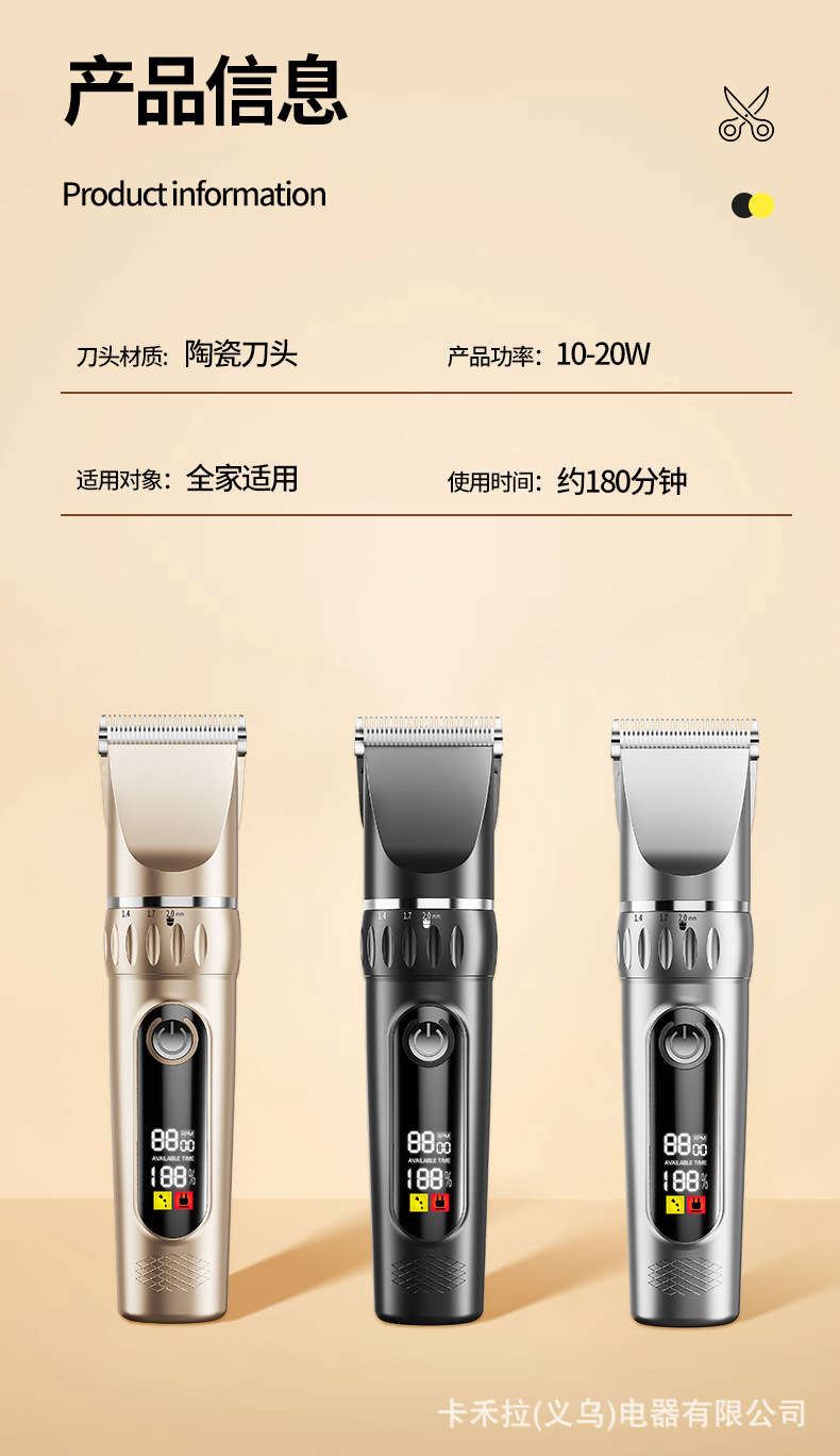 • 2단 속도 조절 - 고급형 디지털 표시 클래식 블랙 [커트 망토 + 이중 스틸 가위 + 두꺼운 세라믹 칼날 + 수납 가방]