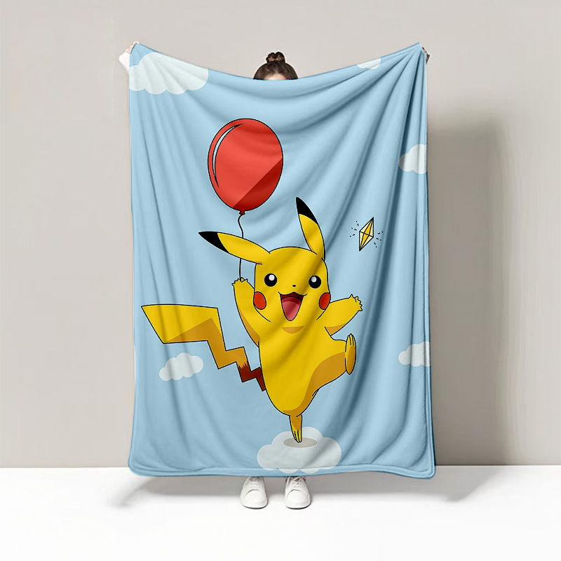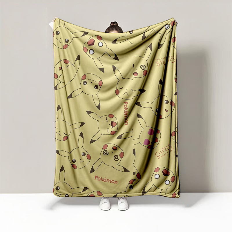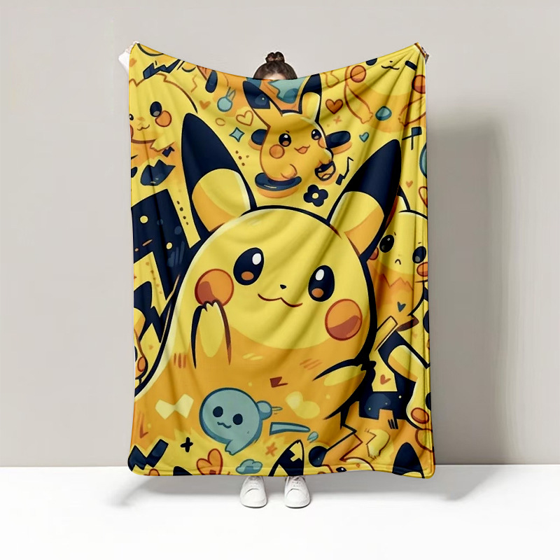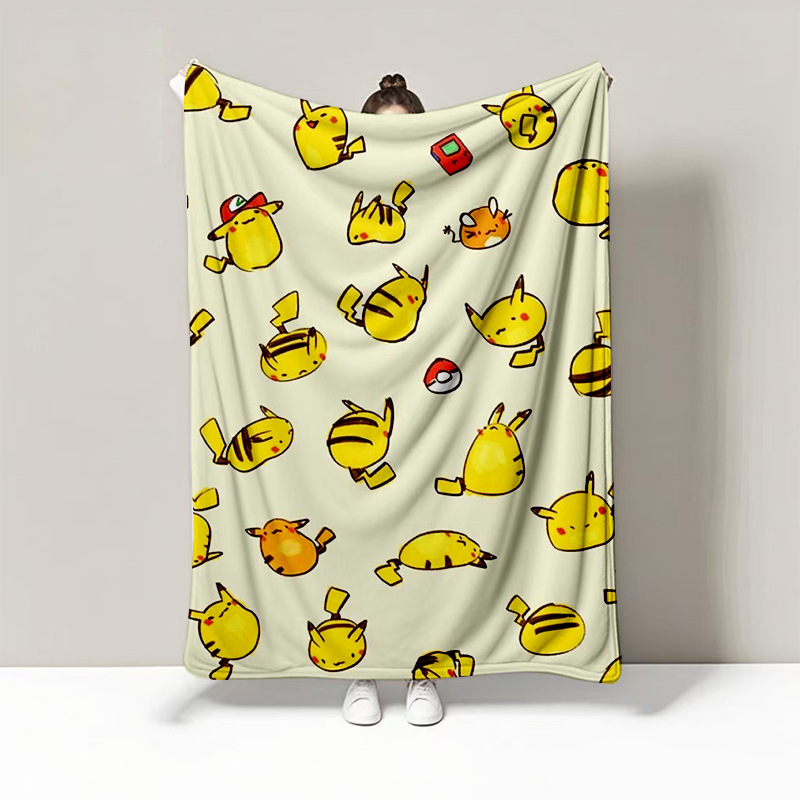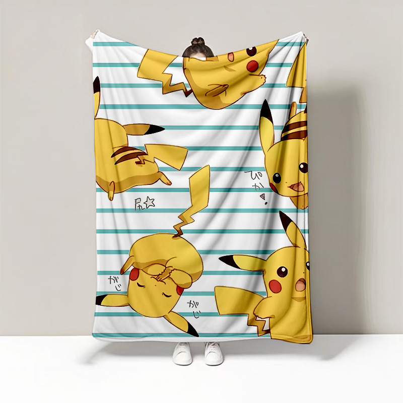 피카츄 애니메이션 플란넬 담요 맞춤형 패턴 사계절용 싱글 에어컨 담요 숄 담요 가정용 편안함