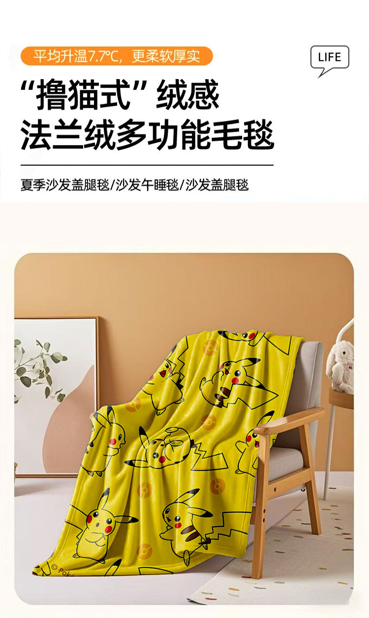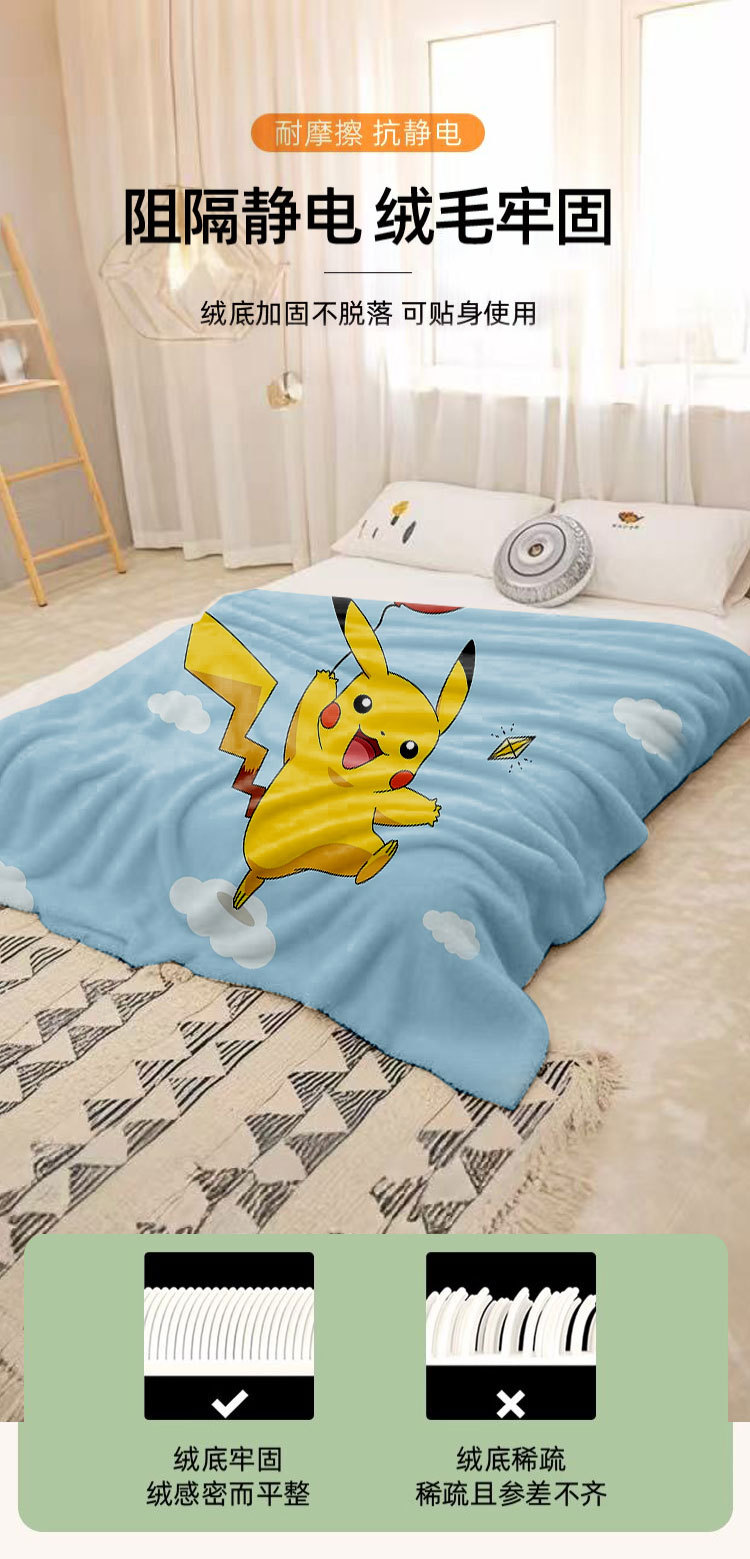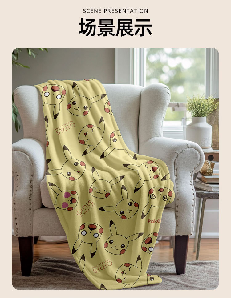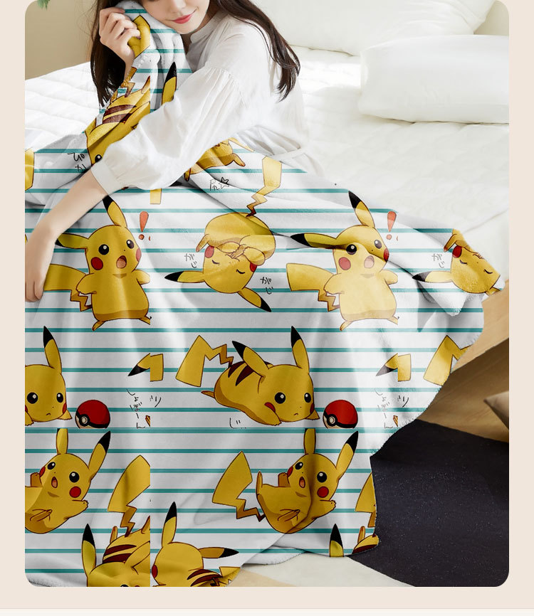 피카츄 애니메이션 플란넬 담요 맞춤형 패턴 사계절용 싱글 에어컨 담요 숄 담요 가정용 편안함