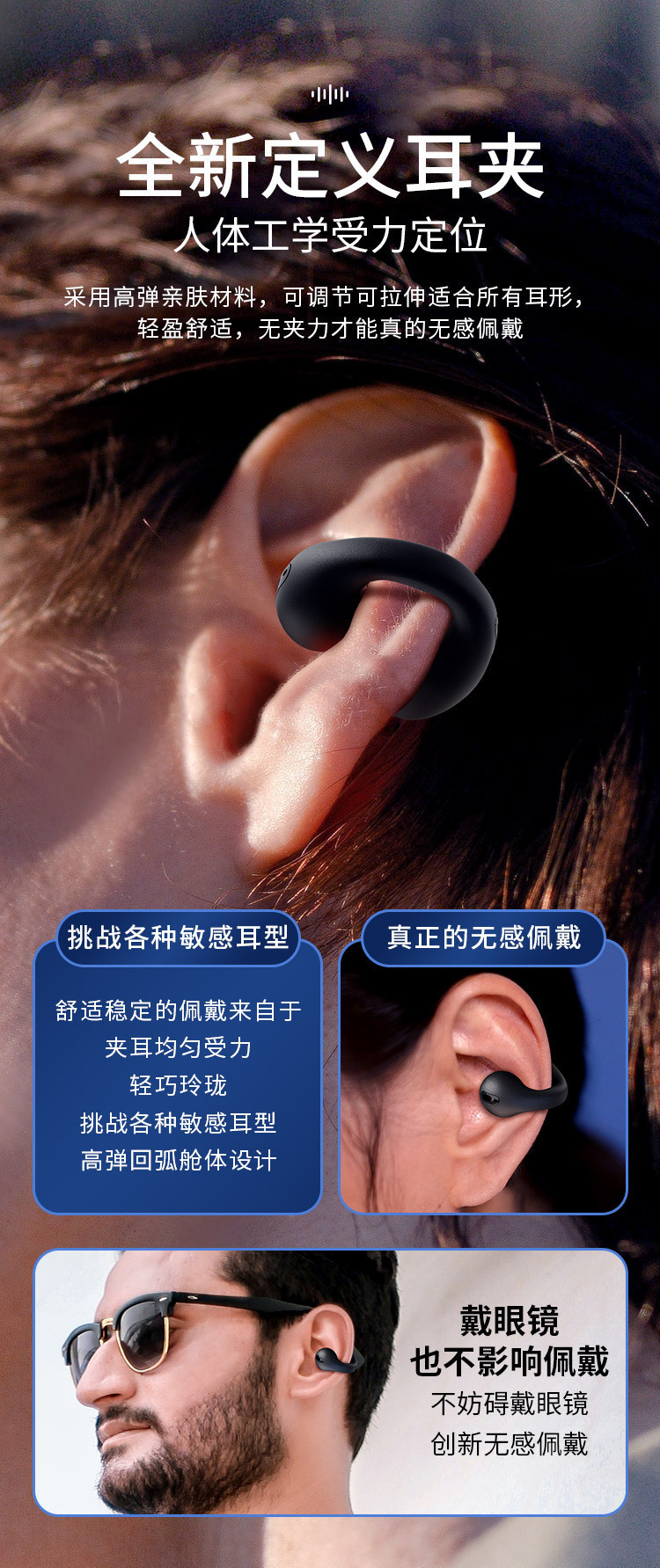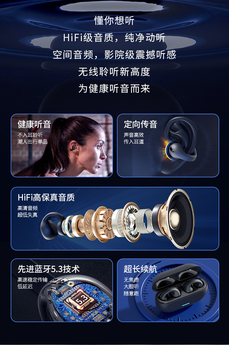 국경 간 인기 T7500 골전도 이어 클립형 진정한 무선 비인이어 고품질 스포츠 귀걸이 블루투스 헤드셋스토어 가기