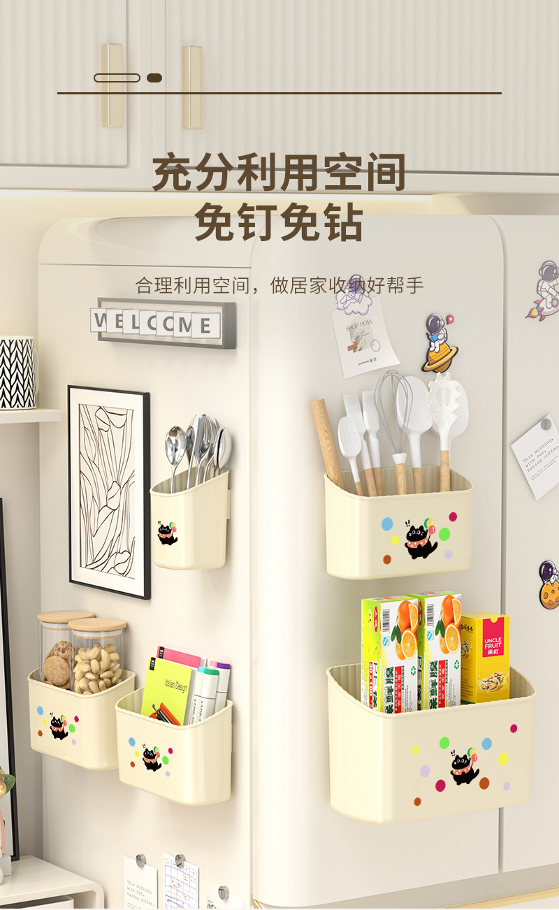 주방 펀치 프리 자기 흡수 상자 전자 레인지 냉장고 세탁기 측면 보관함 벽걸이 형 잔해물 보관함