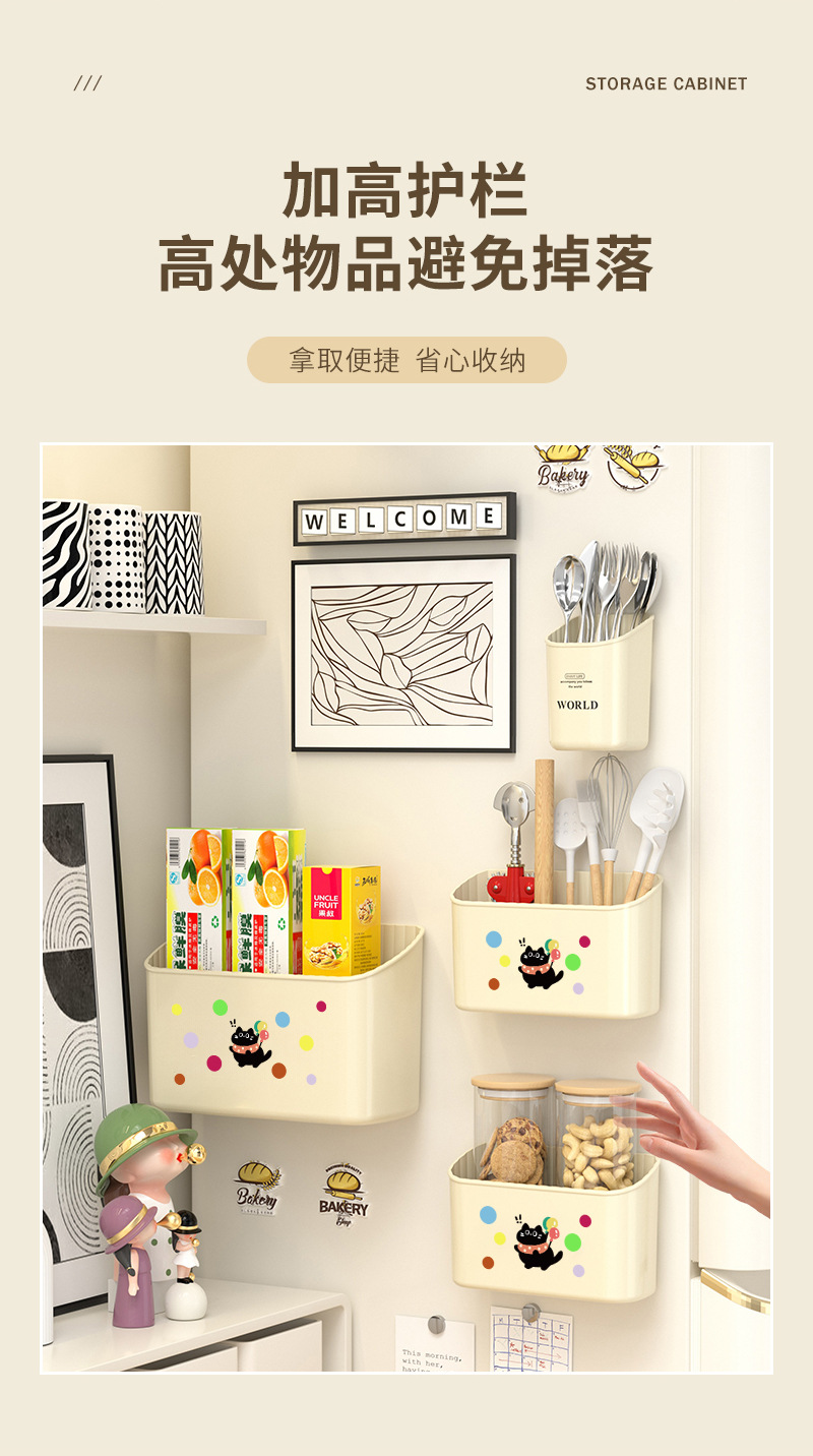 주방 펀치 프리 자기 흡수 상자 전자 레인지 냉장고 세탁기 측면 보관함 벽걸이 형 잔해물 보관함스토어 가기