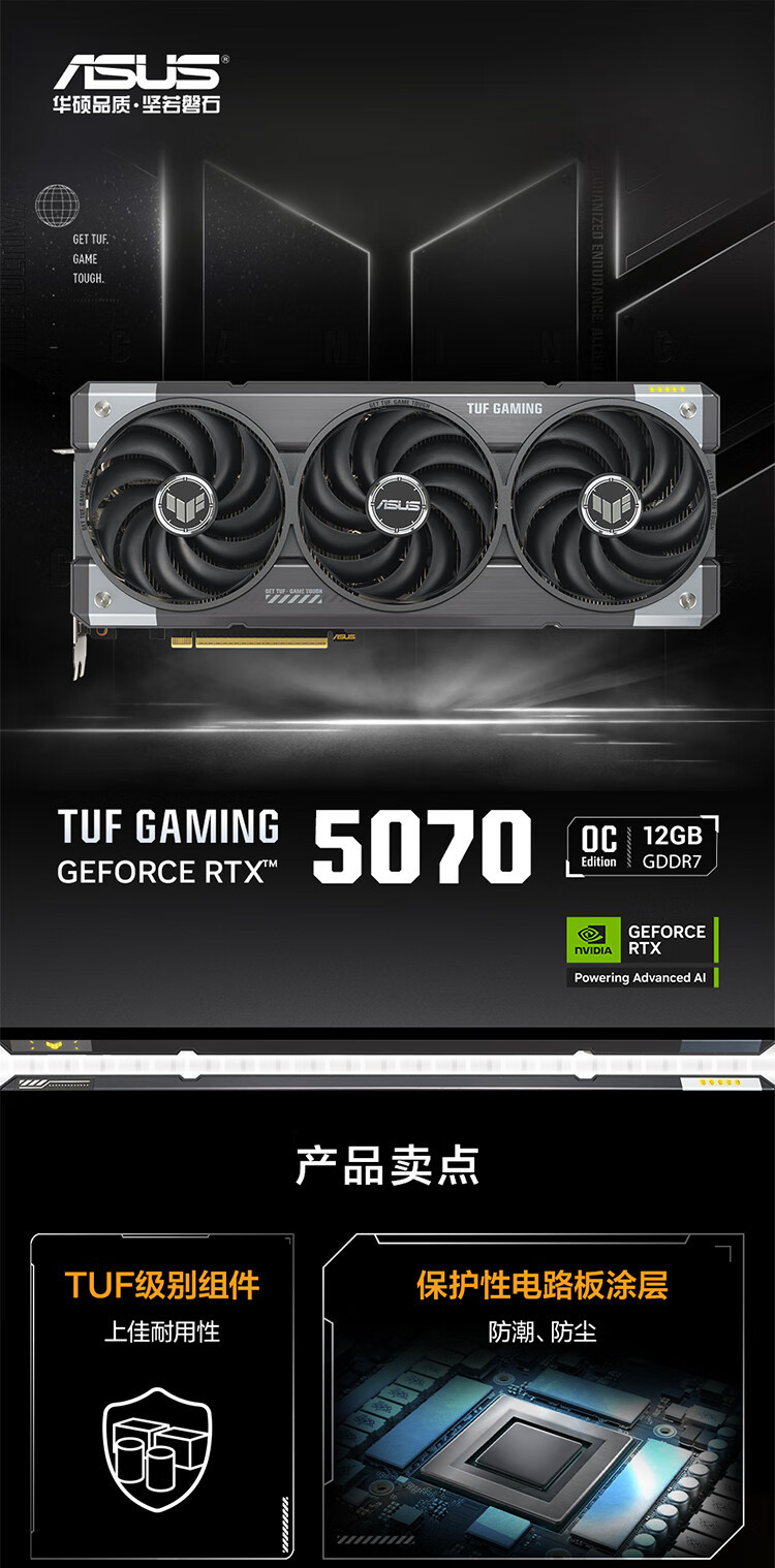 ASUS 데스크탑 컴퓨터 e-스포츠 게임 그래픽 카드 DLSS4 TX-RTX5070-O12G에 적합스토어 가기