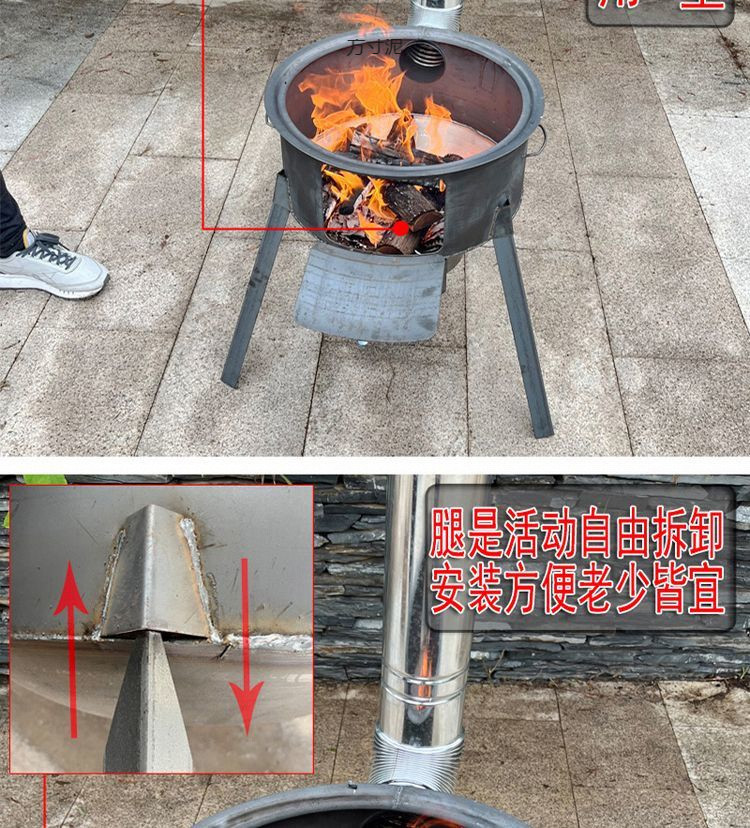 장작 난로, 야외 난로, 장작 난로, 가정용 장작 일체형 난로, 휴대용 두꺼운 강판 대형 스토브