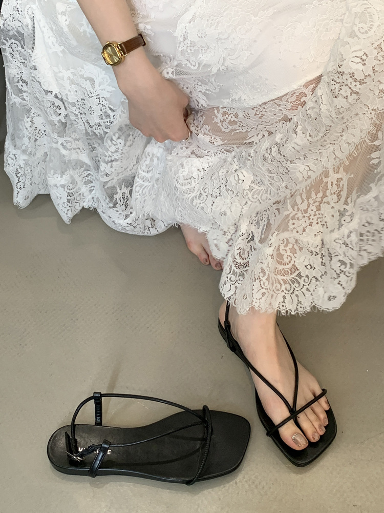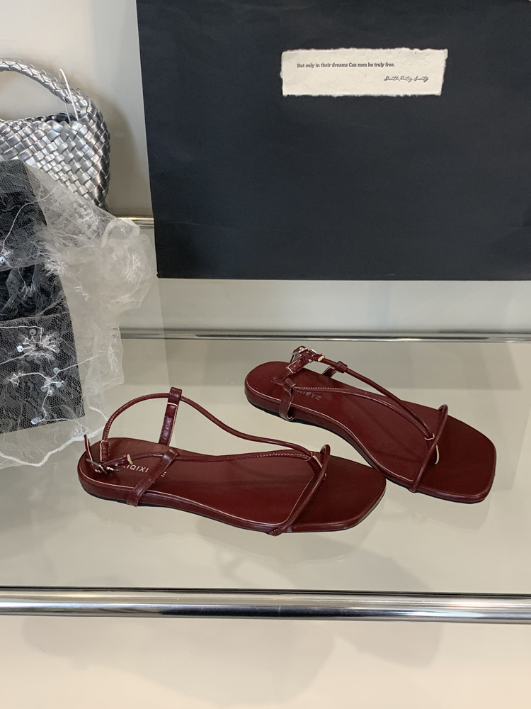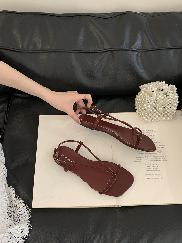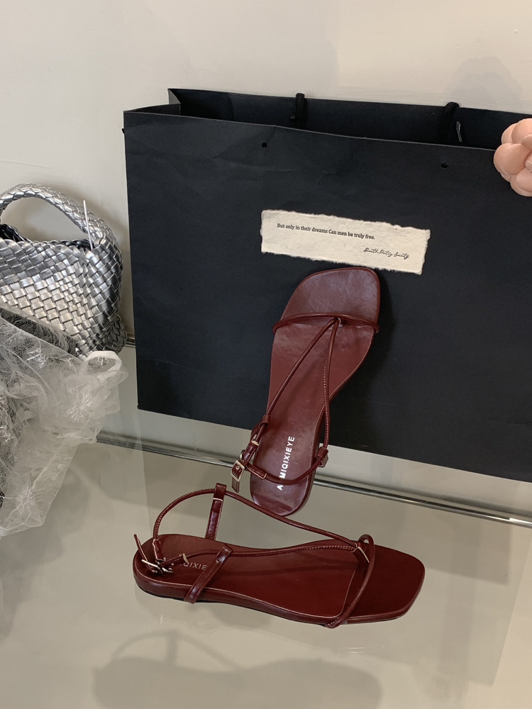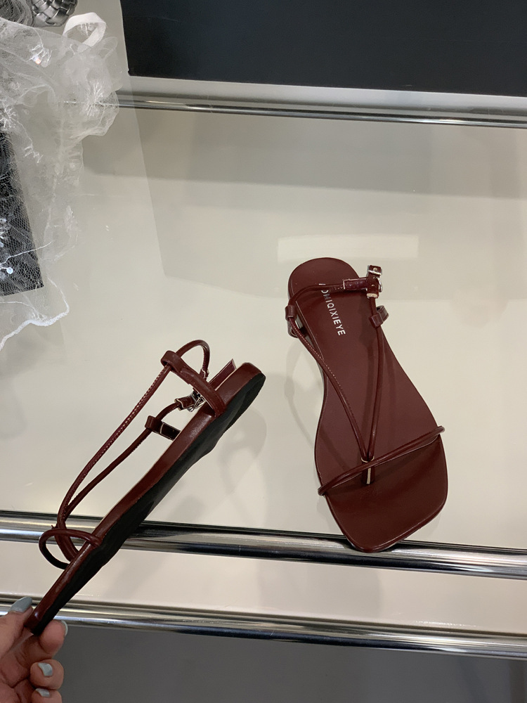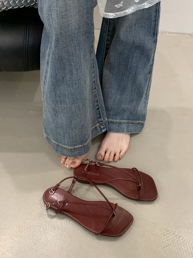 여성을위한 프랑스 플랫 아름다운 플립 플롭 샌들 여름 2025 새로운 미니멀리스트 스타일 비치 신발 작은 웨지 로마 신발