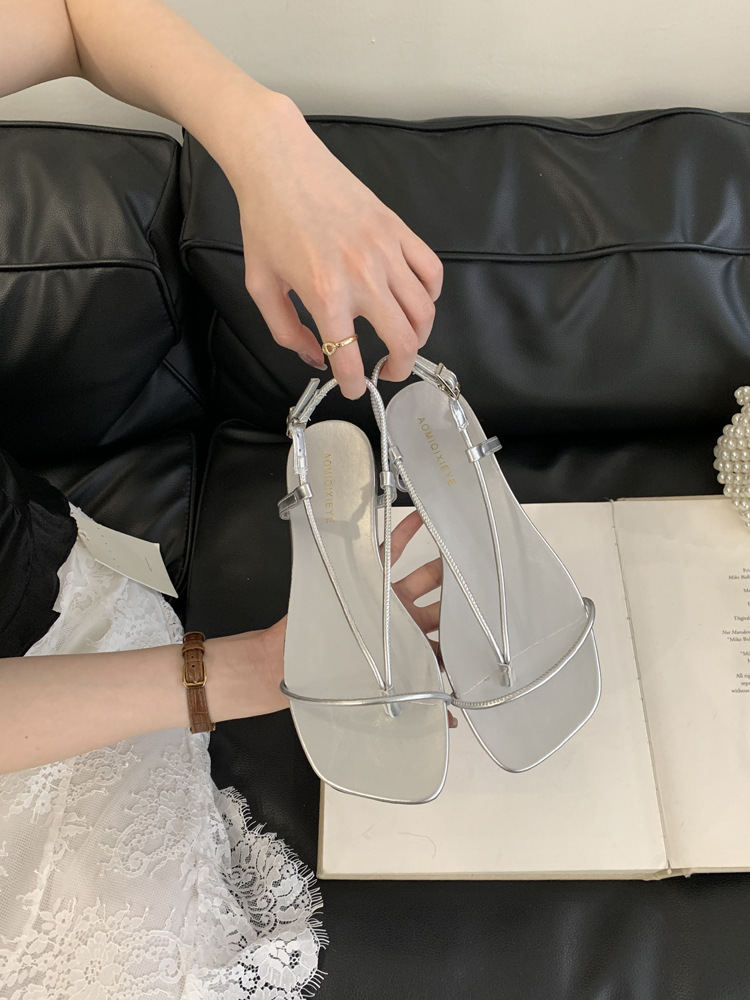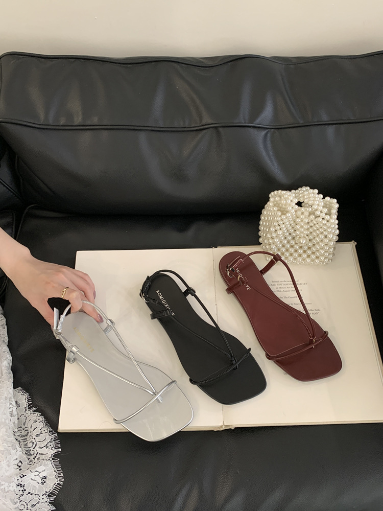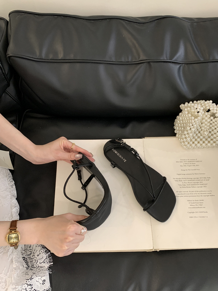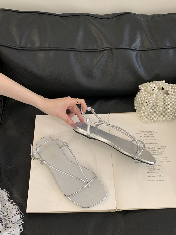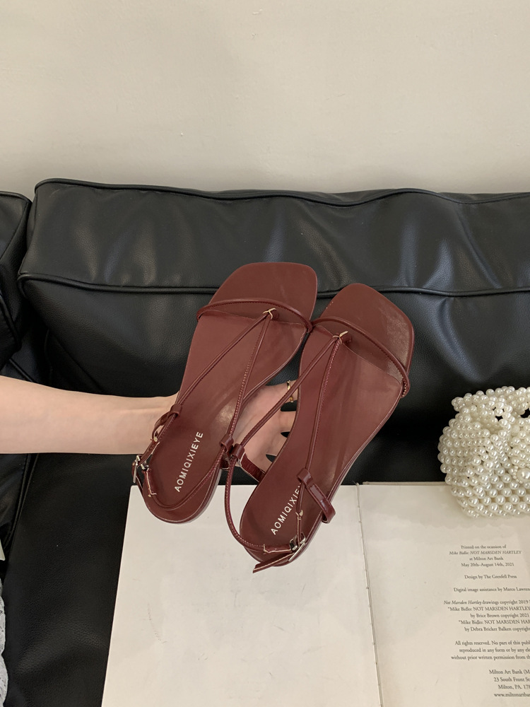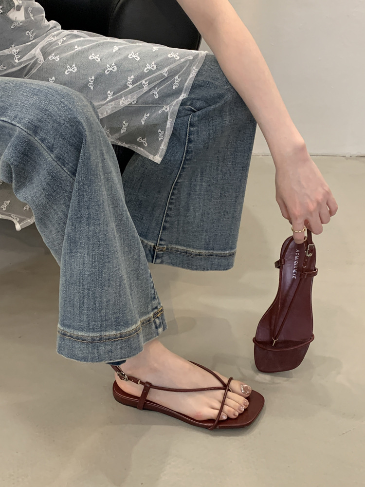 여성을위한 프랑스 플랫 아름다운 플립 플롭 샌들 여름 2025 새로운 미니멀리스트 스타일 비치 신발 작은 웨지 로마 신발