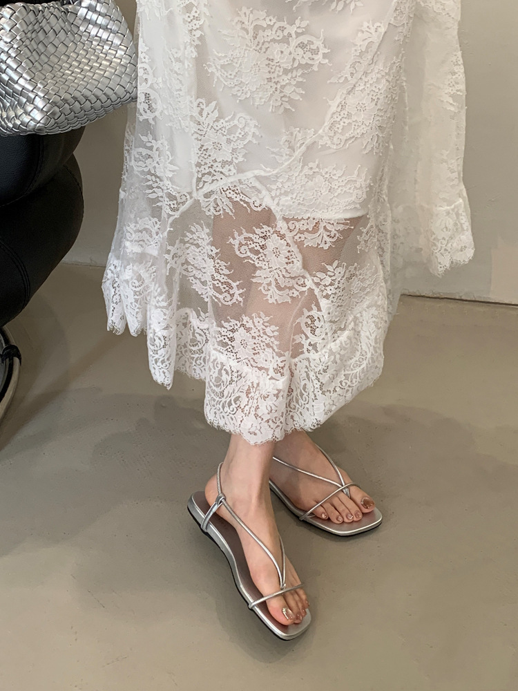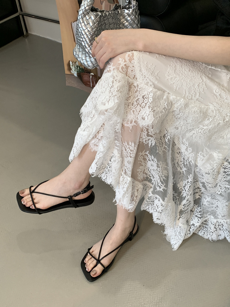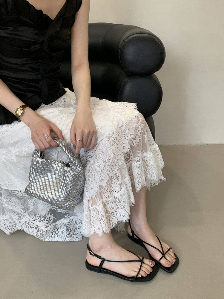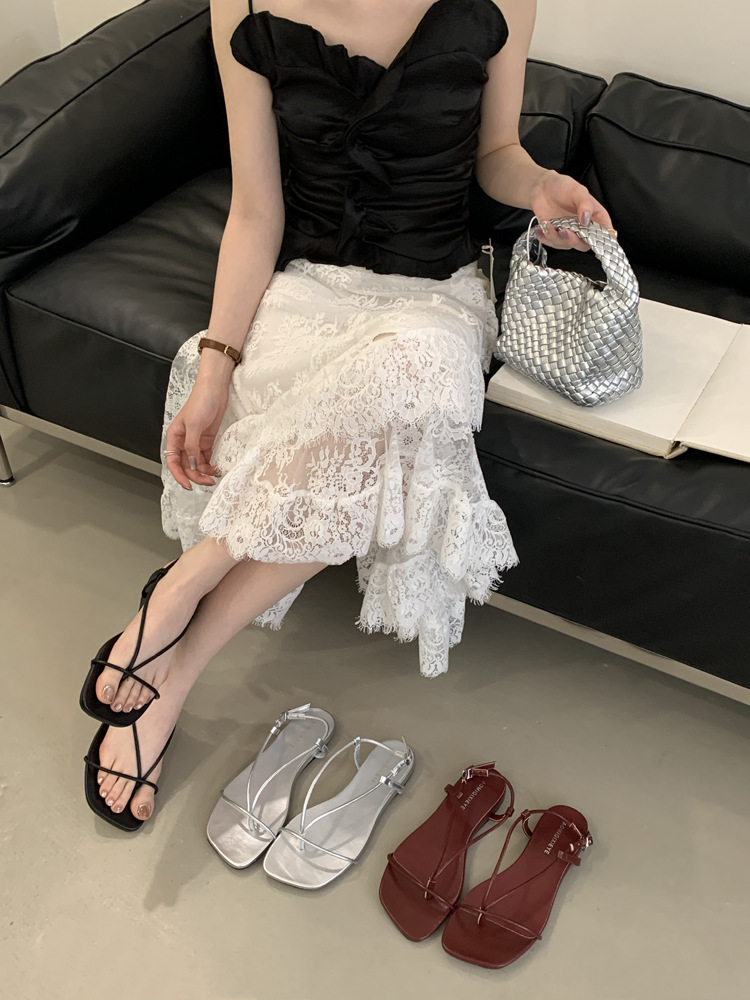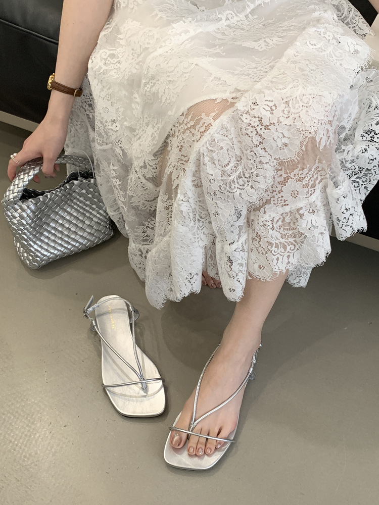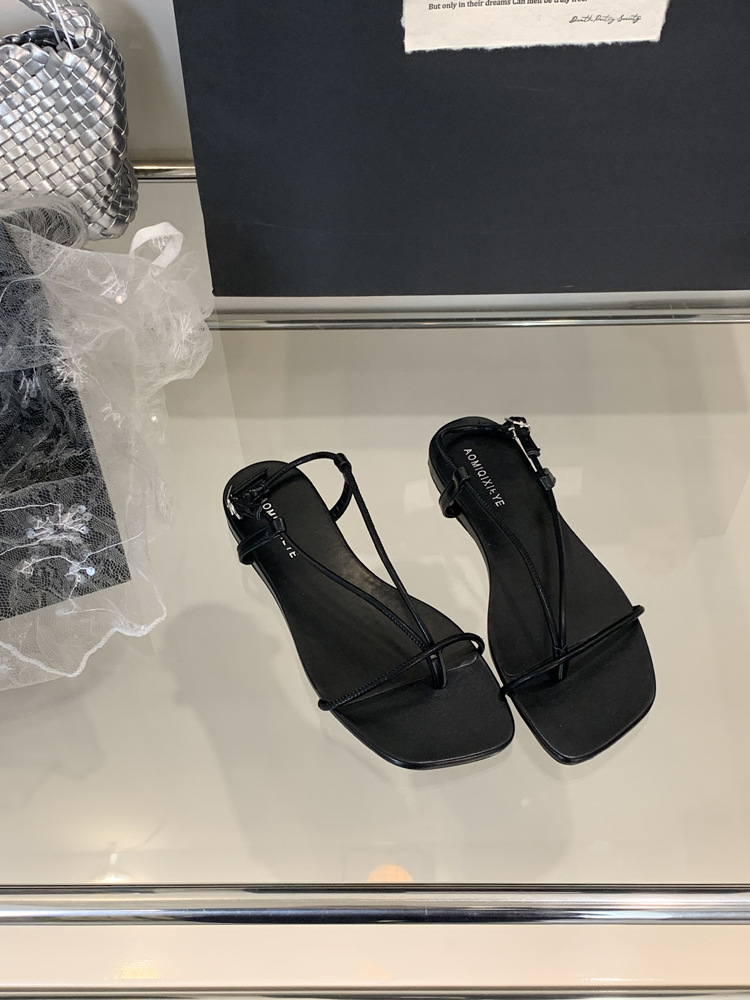 여성을위한 프랑스 플랫 아름다운 플립 플롭 샌들 여름 2025 새로운 미니멀리스트 스타일 비치 신발 작은 웨지 로마 신발