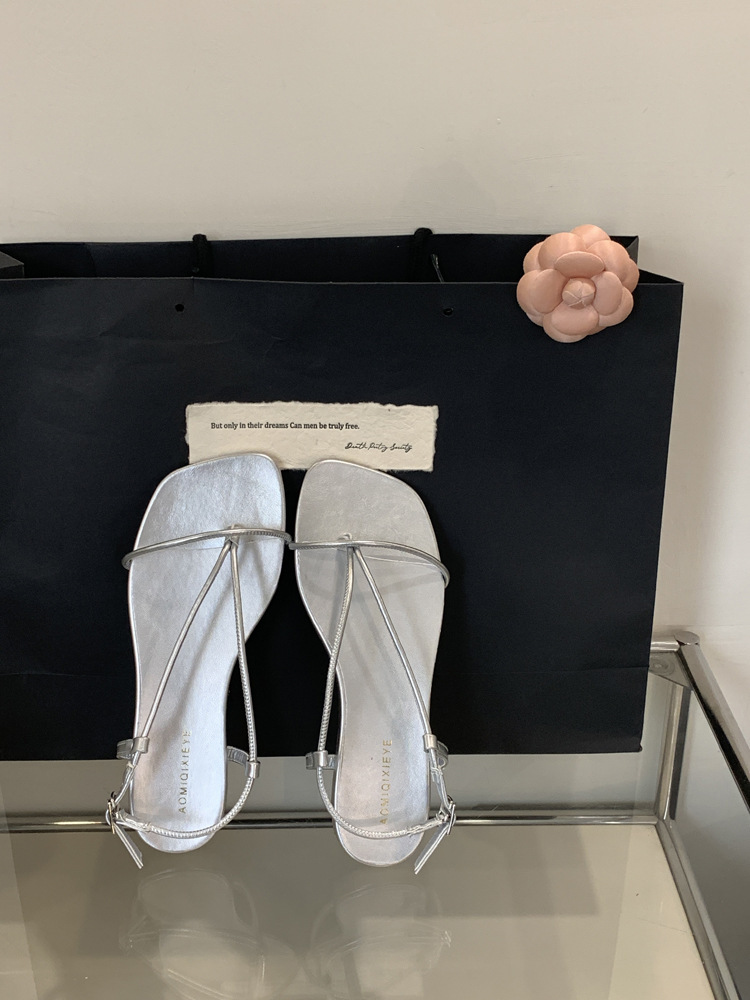여성을위한 프랑스 플랫 아름다운 플립 플롭 샌들 여름 2025 새로운 미니멀리스트 스타일 비치 신발 작은 웨지 로마 신발스토어 가기