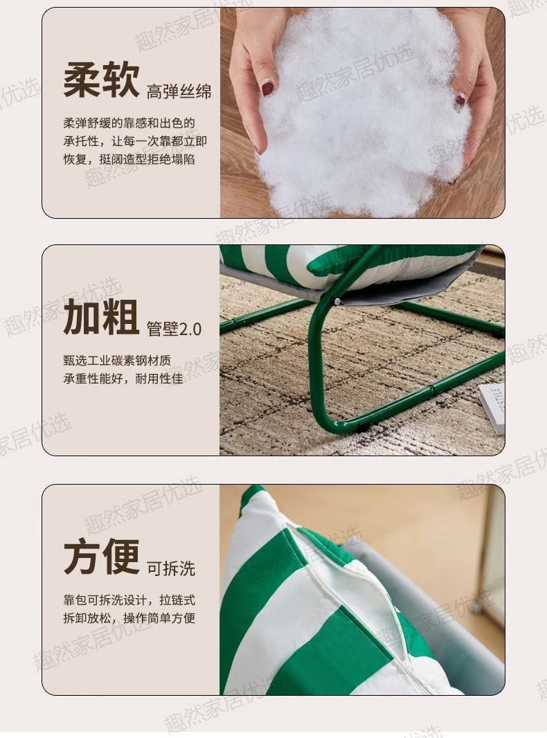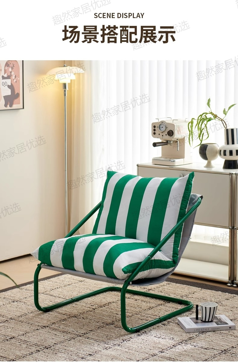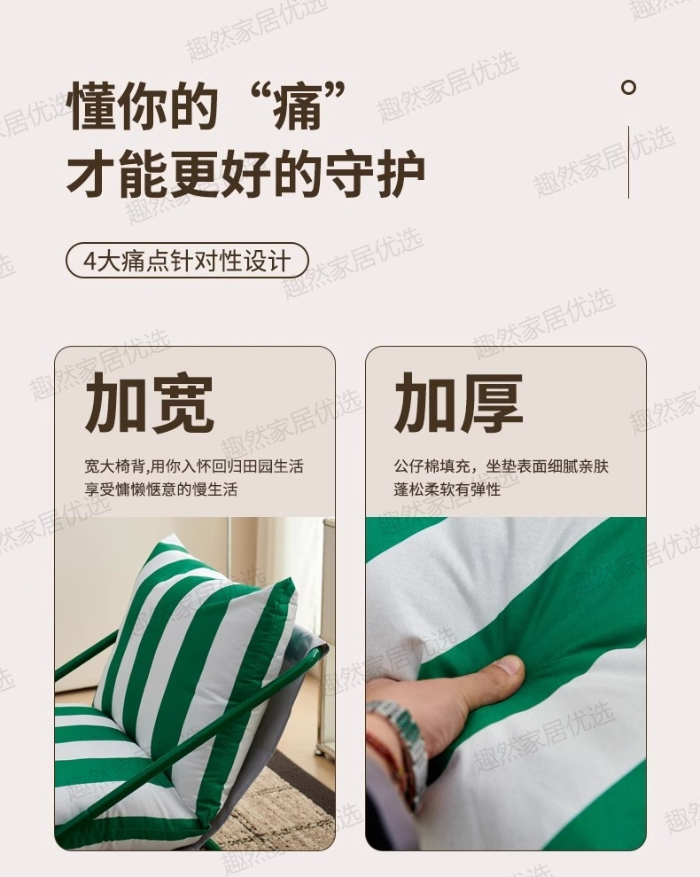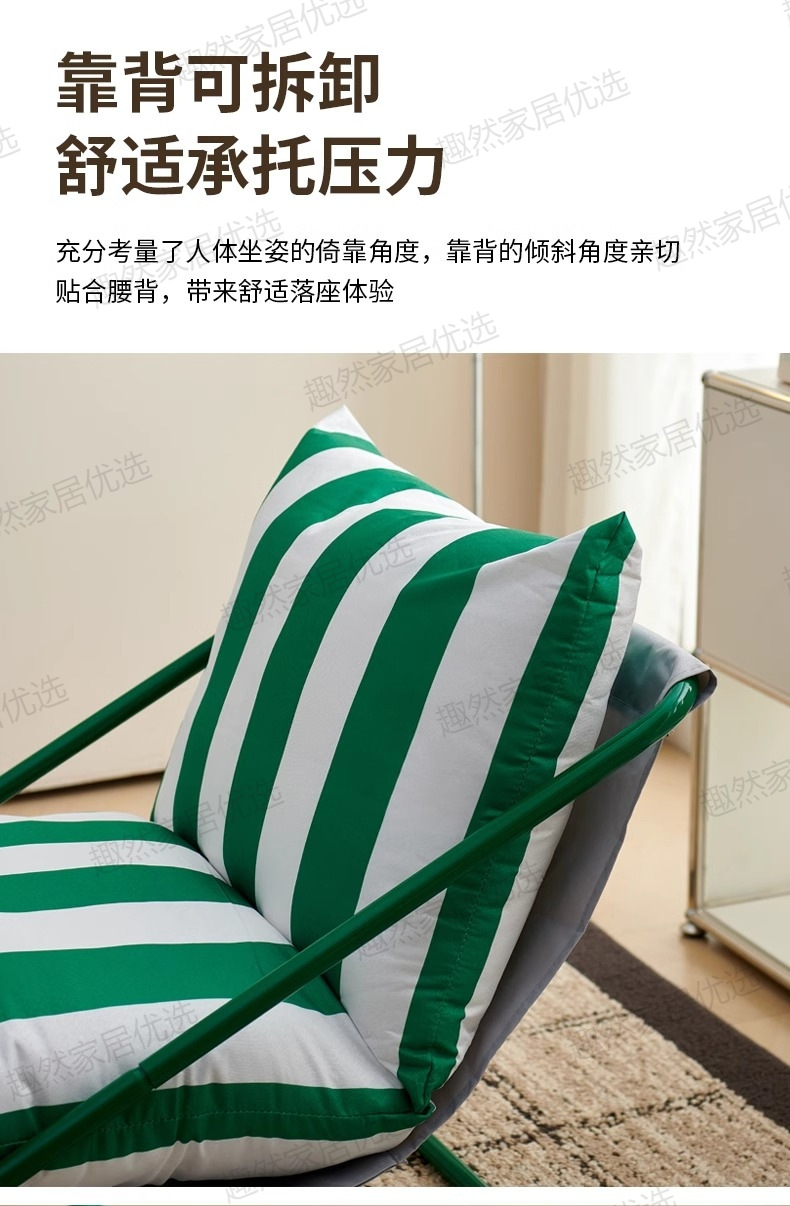• [녹색과 흰색 줄무늬 시트쿠션 두꺼워 업그레이드] 그린 프레임