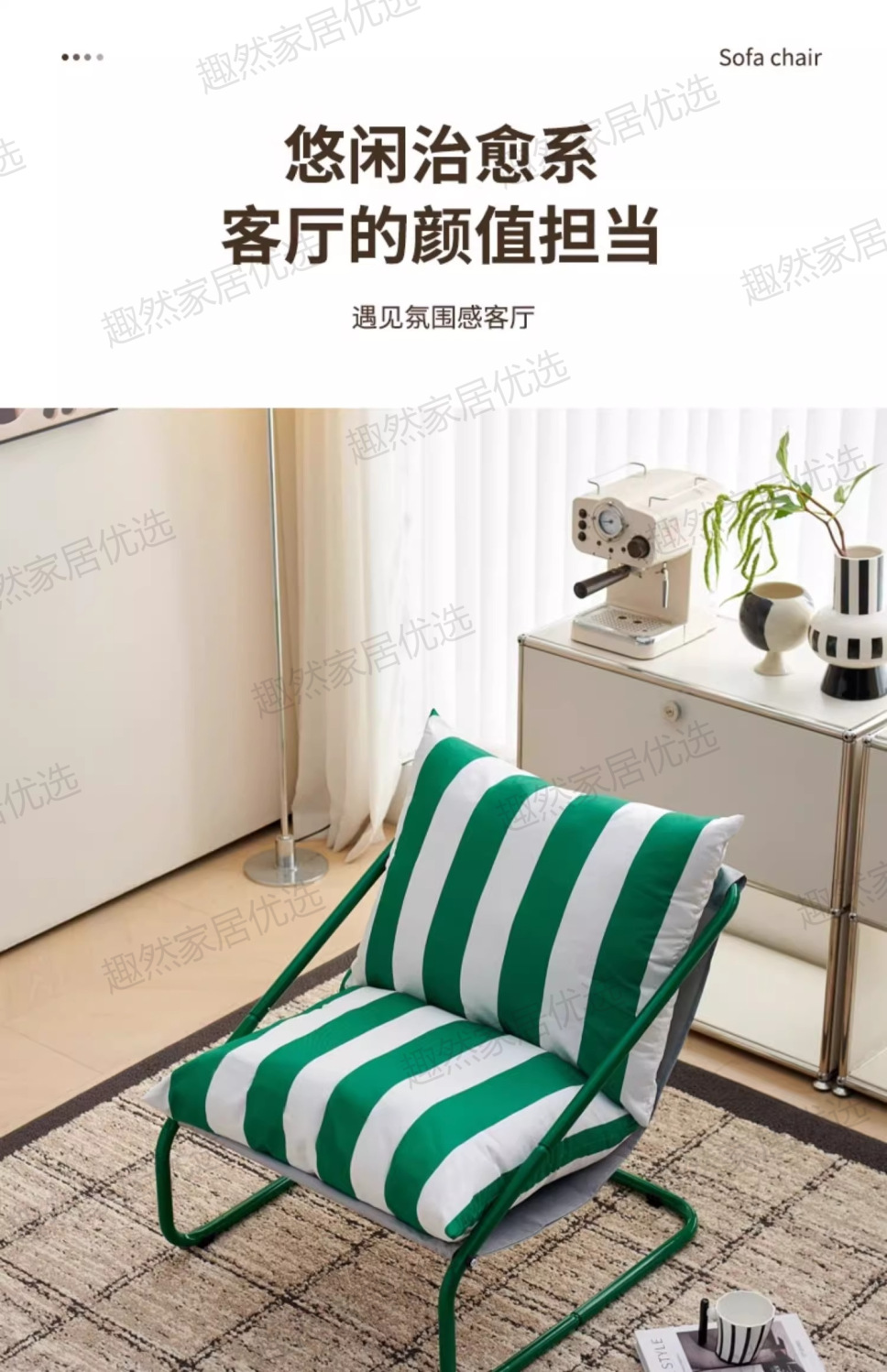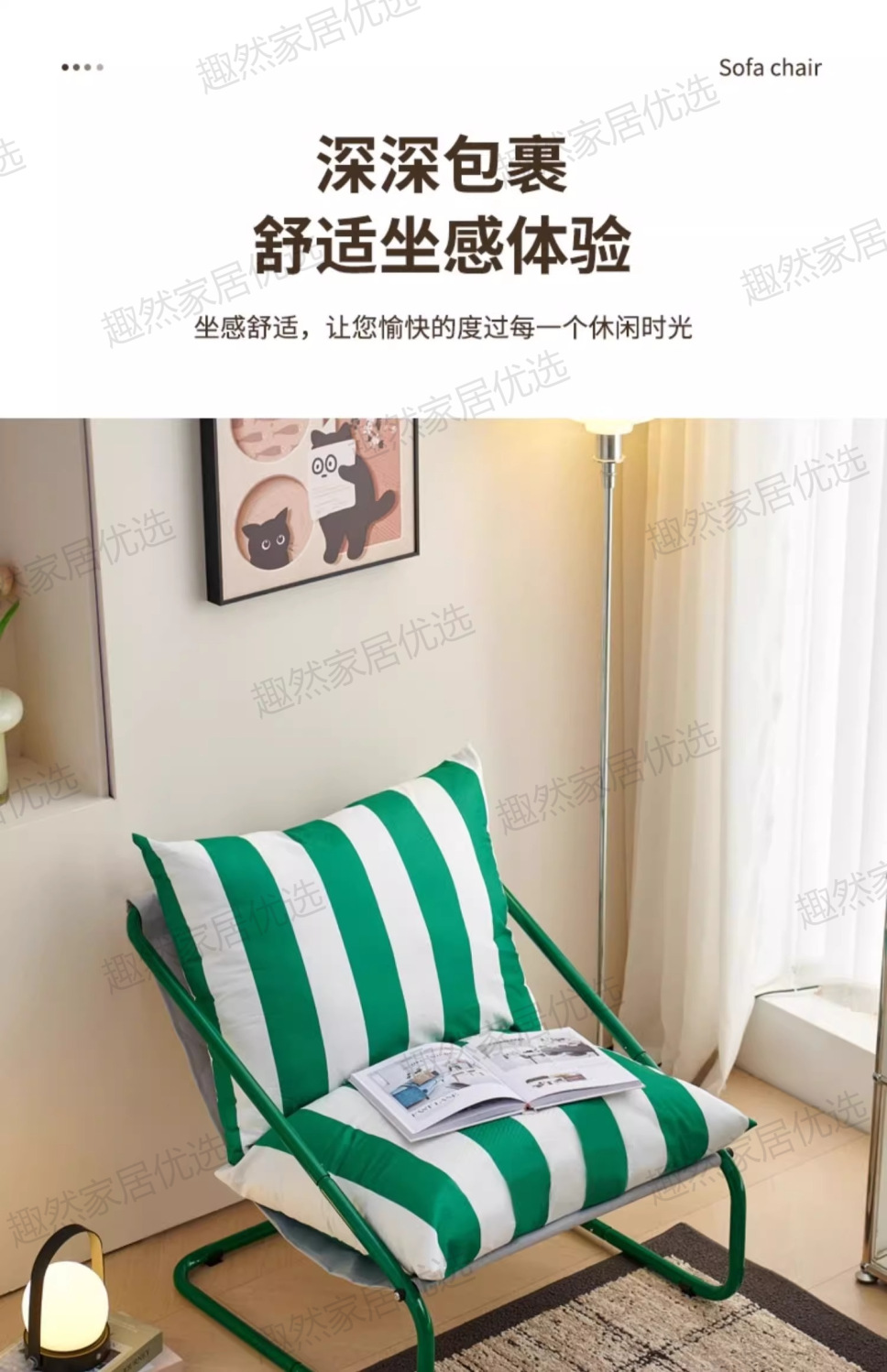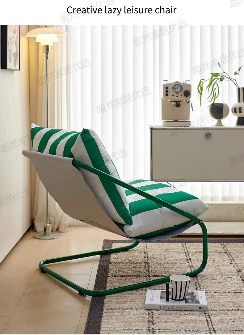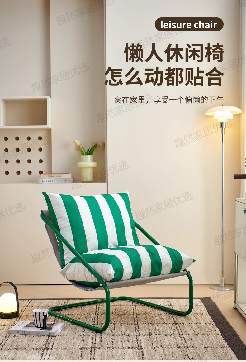 • [녹색과 흰색 줄무늬 시트쿠션 두꺼워 업그레이드] 그린 프레임