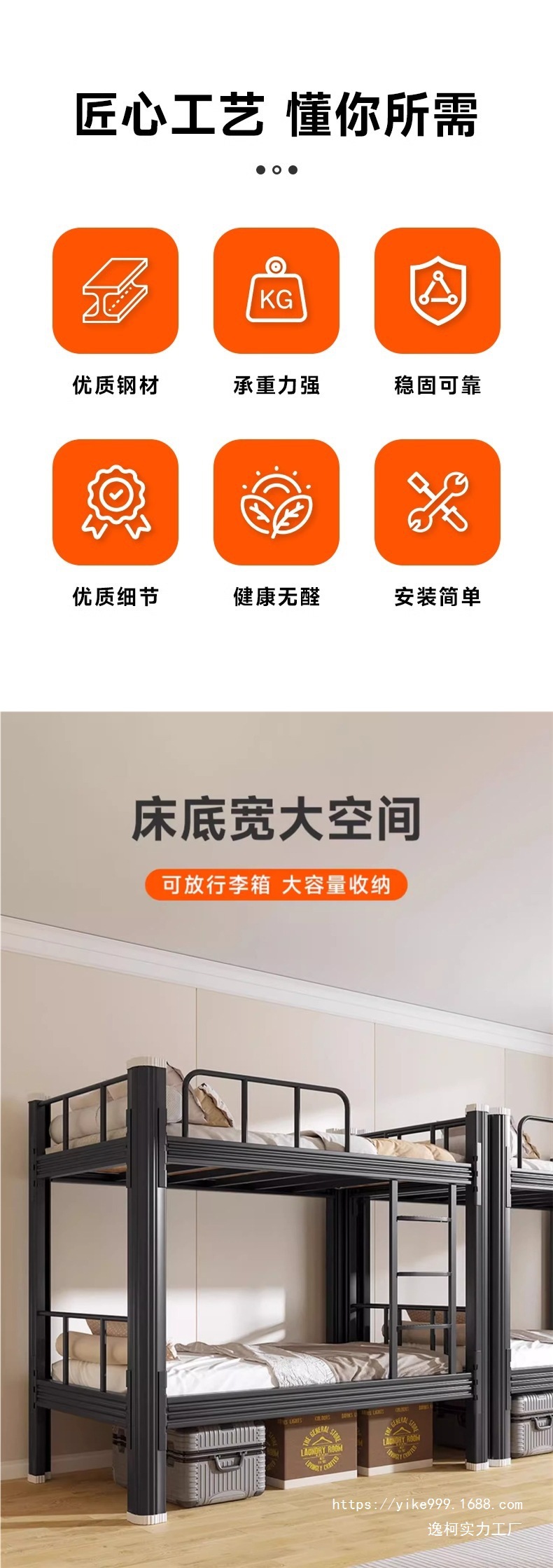 강철 침대, 두꺼운 이층 침대, 대학 기숙사 건설 현장 작업자, 철제 프레임 침대, 강화 난간, 높낮이 침대스토어 가기