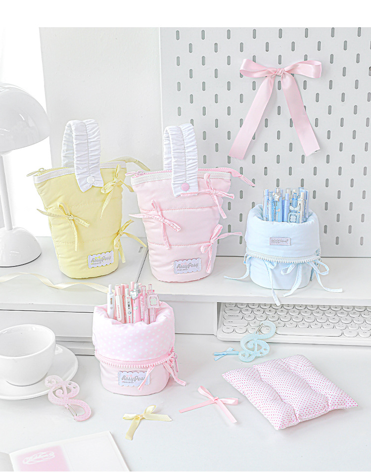 RosyPosy 소프트 디자인 밀키 발레 수직 펜 가방 ins bow 접이식 듀퐁 코튼 펜 가방스토어 가기