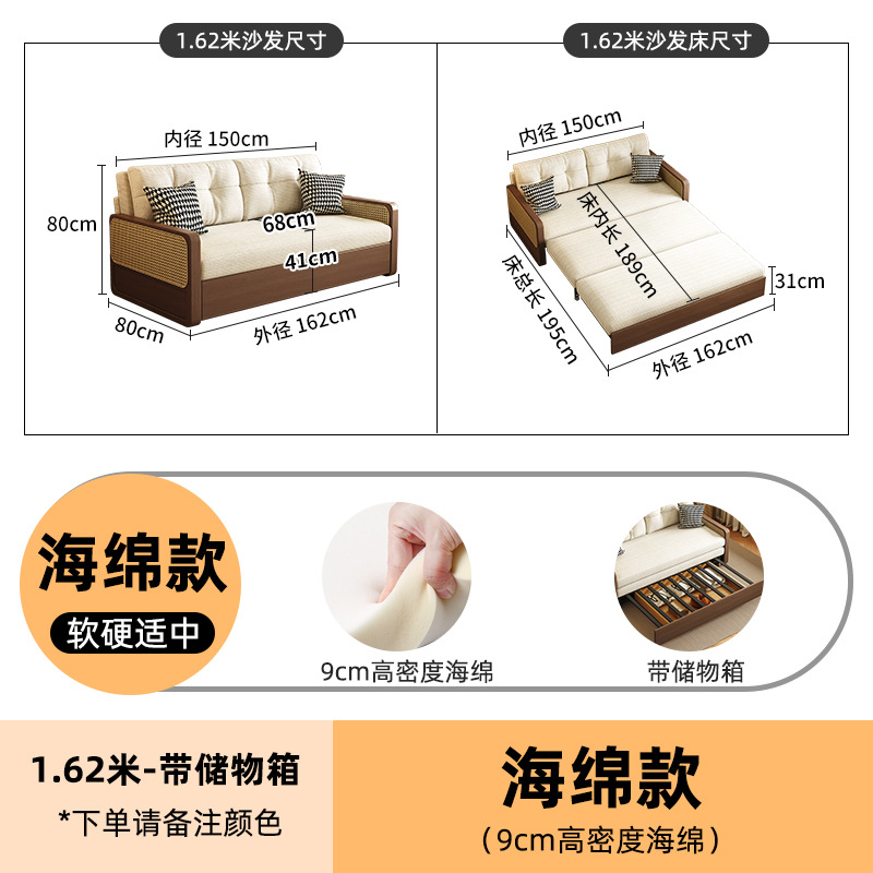 통나무 스타일 접이식 소파 침대 단단한 나무 작은 아파트 이중 목적 거실 연구 더블 다기능 텔레스코픽 침대