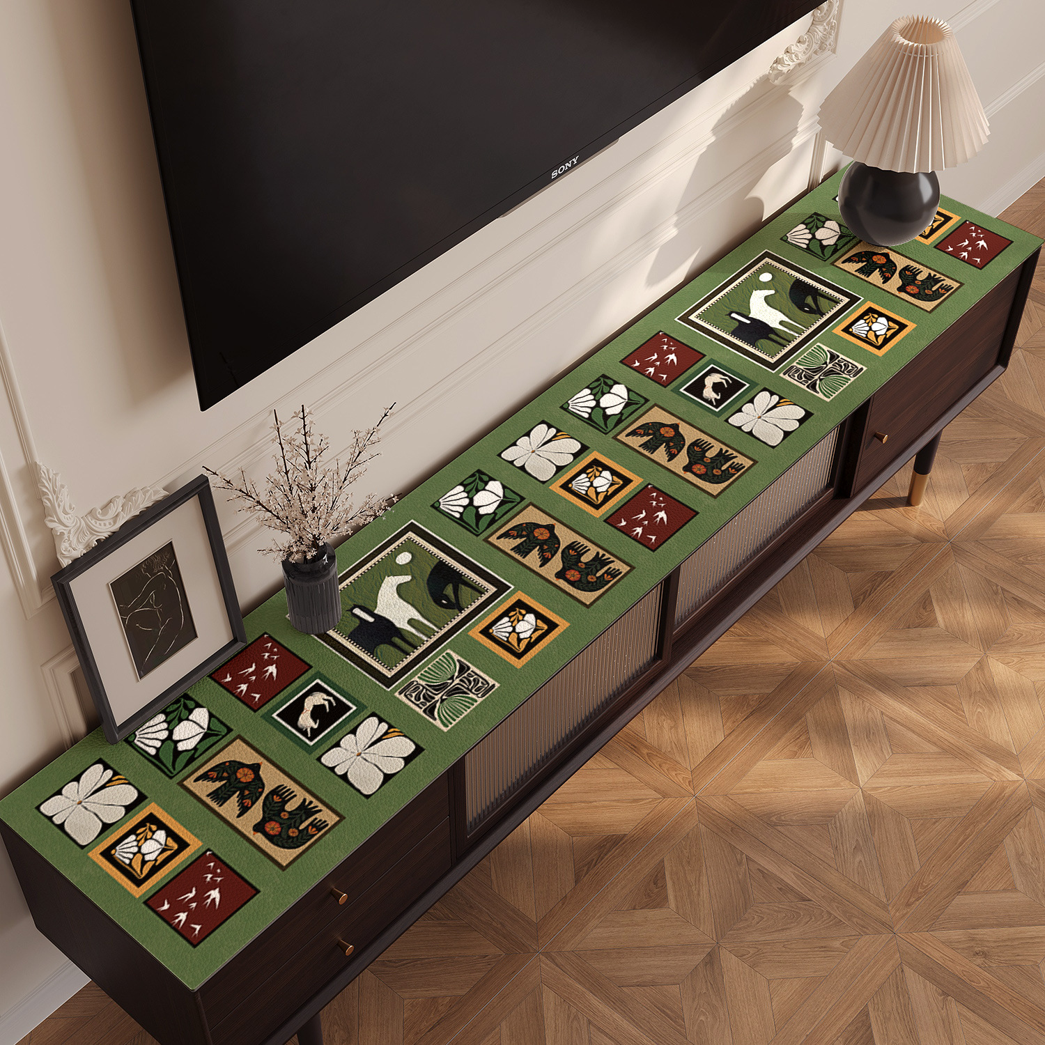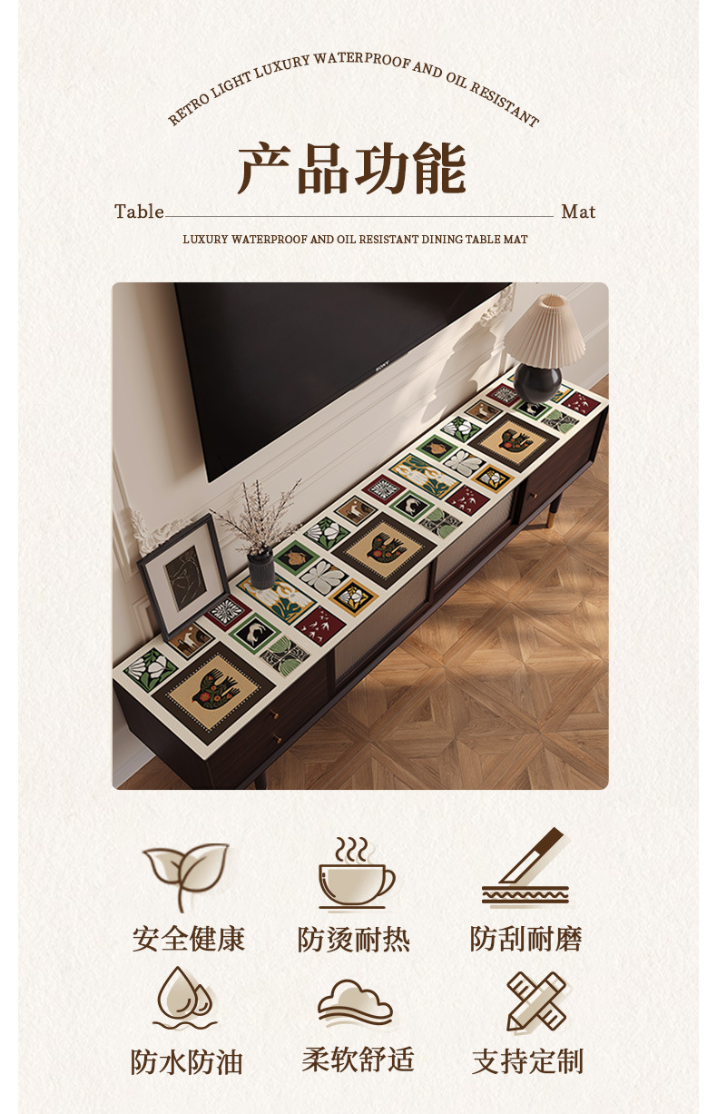 가죽 TV 캐비닛 테이블 매트, 가벼운 럭셔리 및 고급 방수 및 내유성 찬장 테이블 매트, 가정용 긴 미끄럼 방지 식탁보