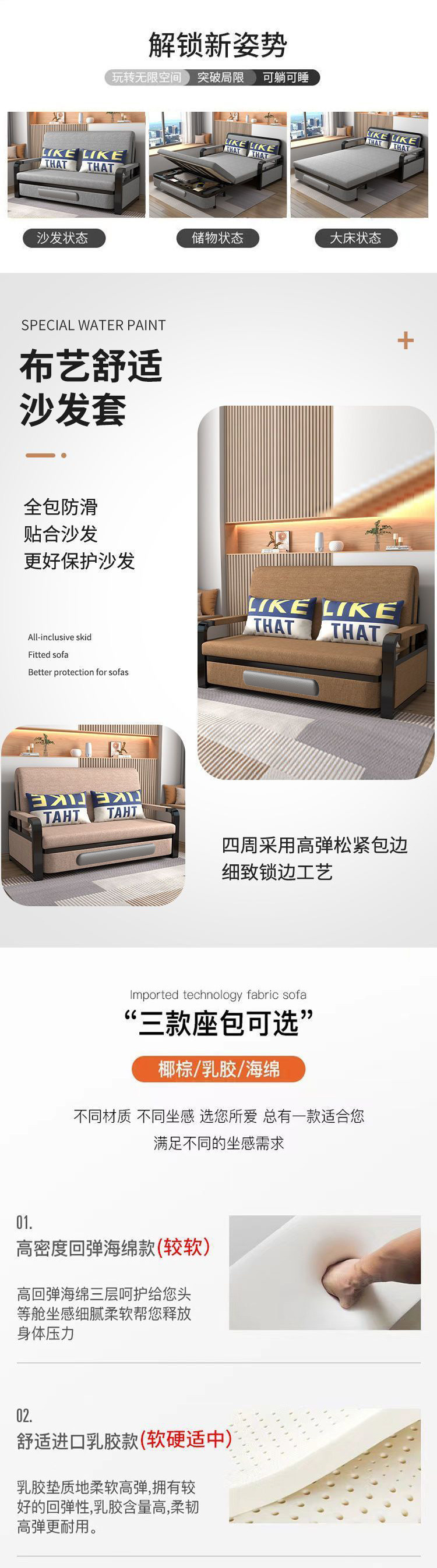 고품질 소파 베드 이중 목적 접이식 소파 베드 홈 거실 다기능 텔레스코픽 침대 분리 가능스토어 가기